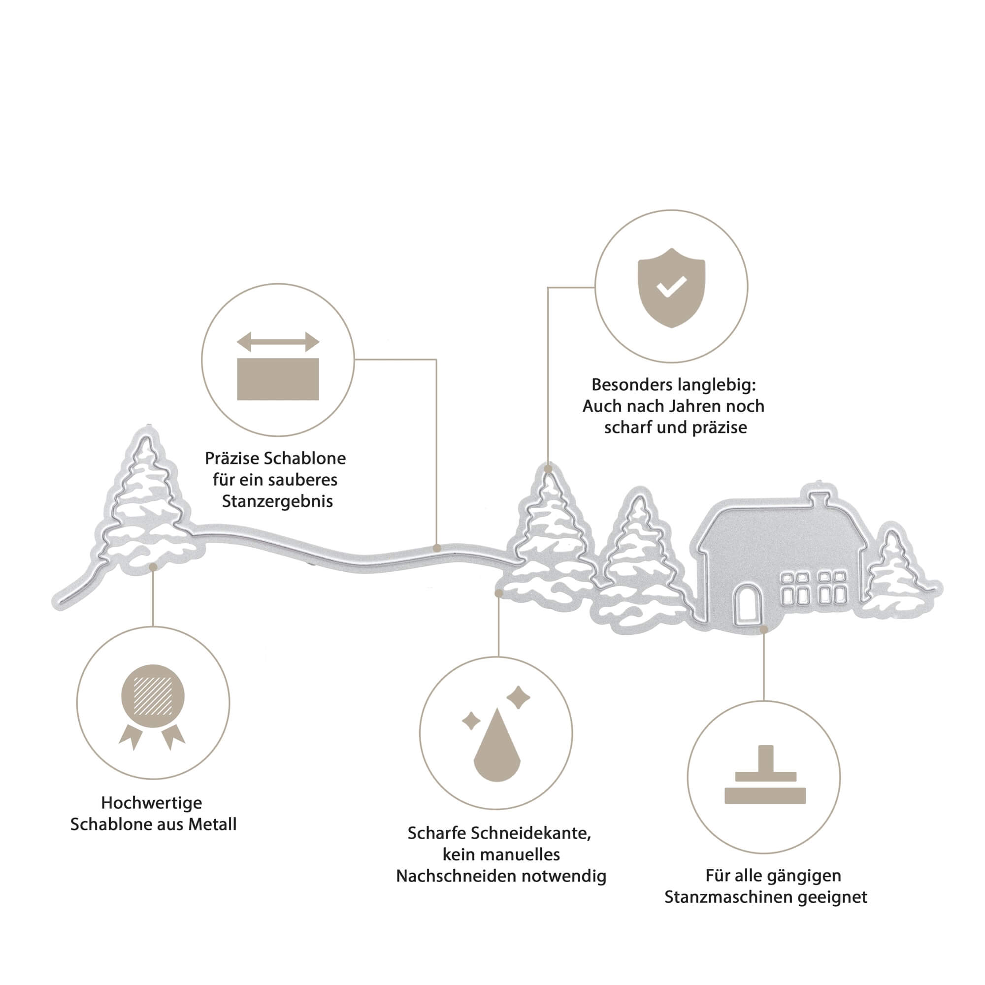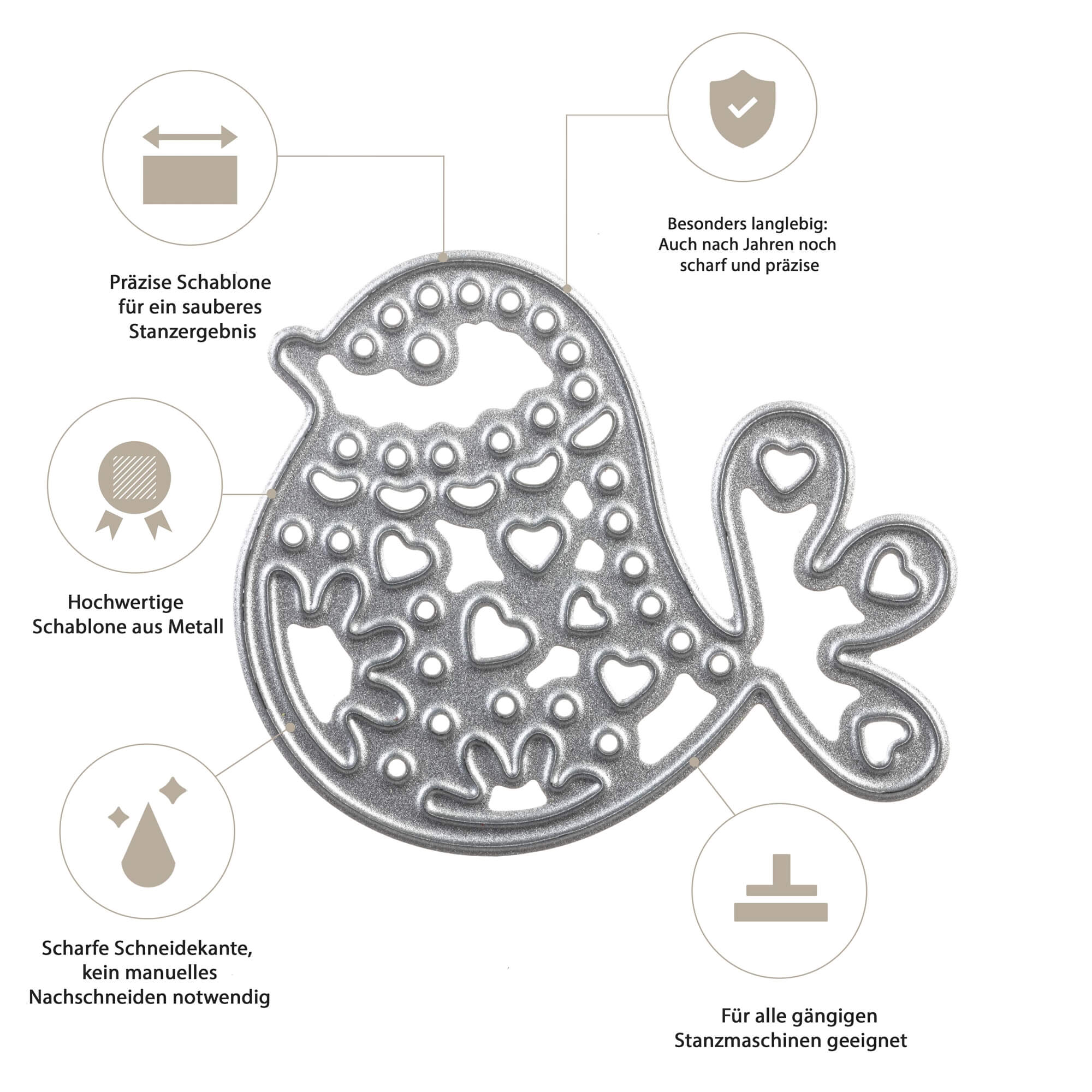 Alle abgebildeten Stanzen sind enthalten. Zubehör wie Papier oder Maschinen ist nicht Teil des Lieferumfangs