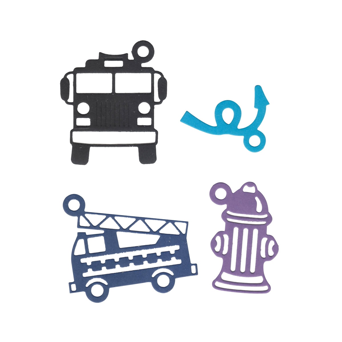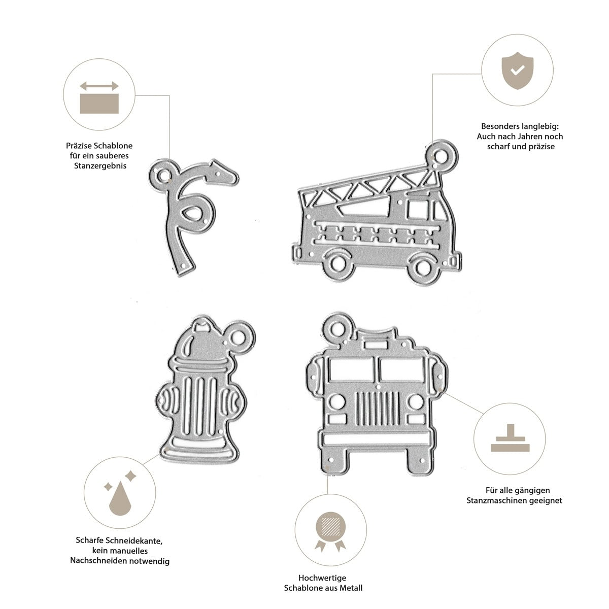 Unsere Stanzschablonen sind grundsätzlich mit allen Stanzmaschinen kompatibel, wenn sie hineinpassen. Für die Stanzschablone Feuerwehreinsatz Set gilt: