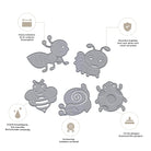 Größe: Ameise: 5,6 x 4,5 cm, Biene: 4,4 x 4,6 cm, Marienkäfer: 4 x 4 cm.
