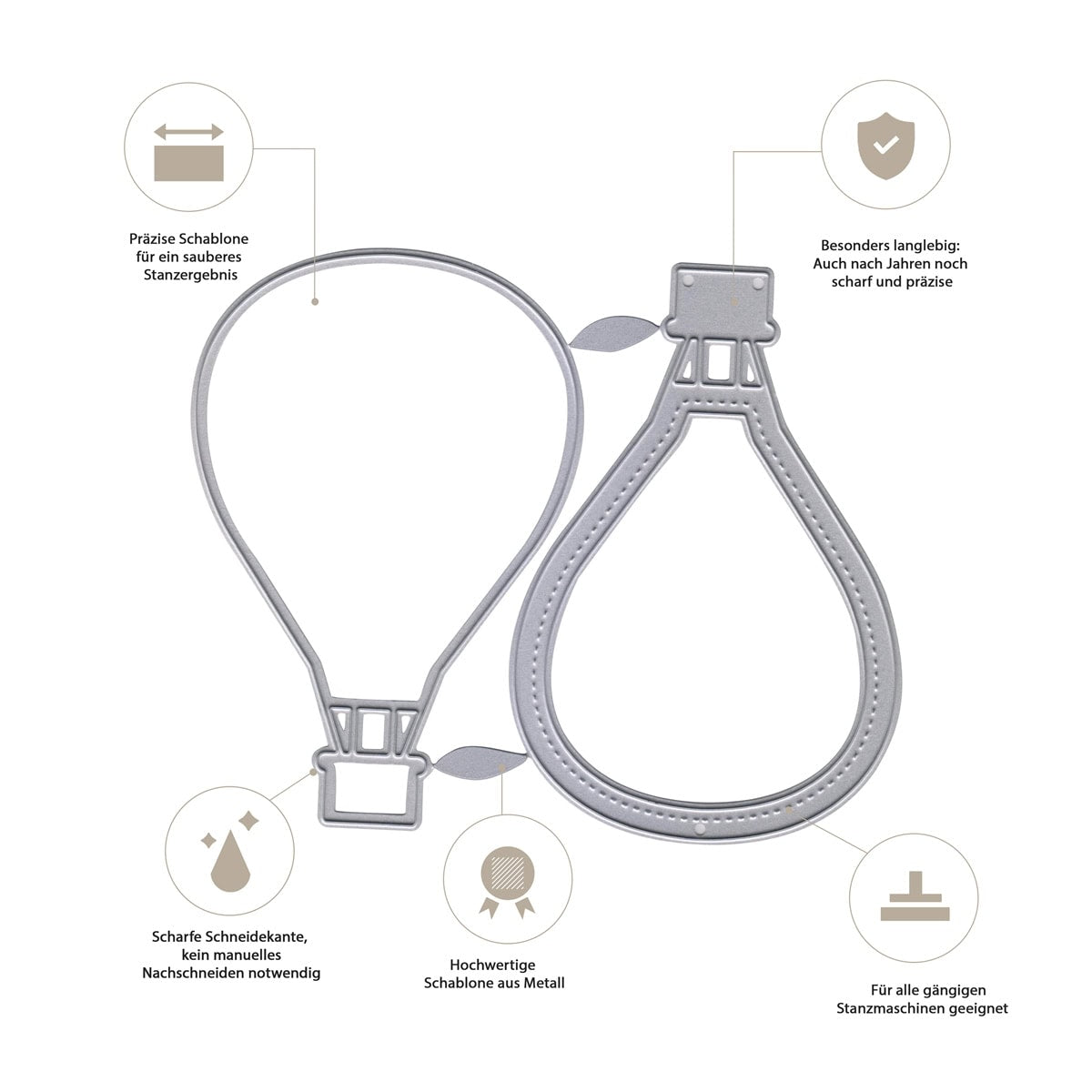 Unsere Stanzschablonen sind grundsätzlich mit allen Stanzmaschinen kompatibel, wenn sie hineinpassen. Für die Stanzschablone Heißluftballon Duo gilt: