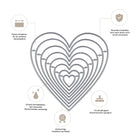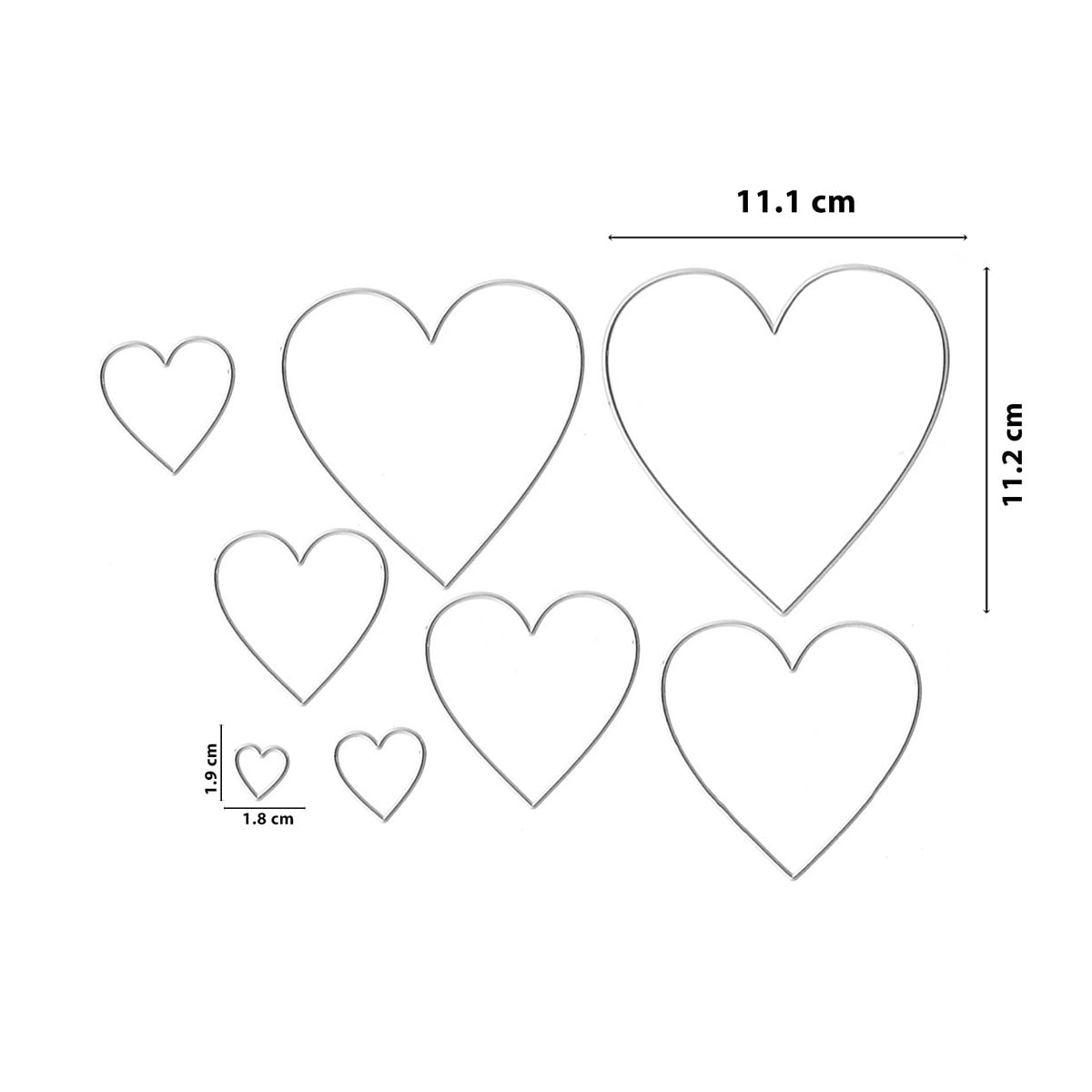 Größtes Herz: 11,1 x 11,2 cm, Kleinstes Herz: 1,8 x 1,9 cm.