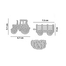 Größe Traktor: 6,7 cm x 5,1 cm | Größe Anhänger: 7,2 cm x 4 cm.