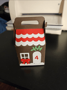 Bastelset für eine Tüte mit winterlichen Motiven. Im Set enthalten sind Fenster, ein Dach, ein Tannenbaum und weitere Motive, Größe ca. 6,5 x 6,5 x 11,5 cm (fertige Schachtel).