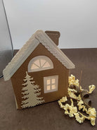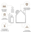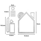 Haus mit Deko, Gesamte Stanze ca. 9,5 x 13,5 cm groß. Größes Teil 10,3 x 13 cm, Fenster 5,9 x 3 cm, Tür 5,9 x 10,2 cm.