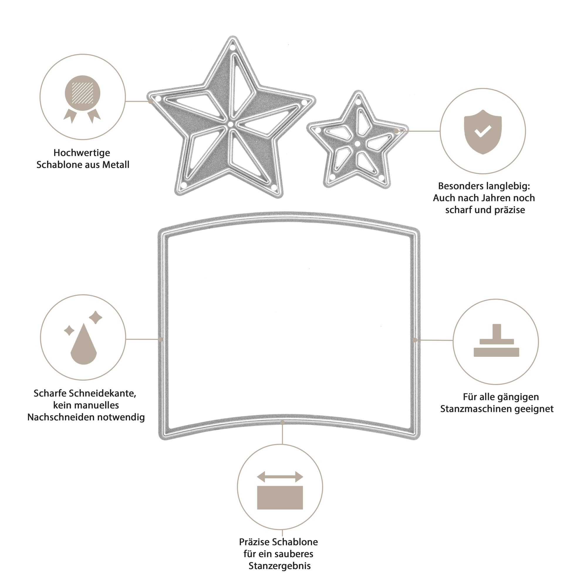 Diese Stanzschablone ist kompatibel mit allen gängigen Stanzmaschinen, z.B. der Big Shot von Sizzix. Unsere Stanzen liefern das beste Bastelergebnis mit hochwertigem Papier. Die Schablonen lassen sich ideal zur Herstellung von Karten, zum Scrapbooking oder zur Dekoration verwenden.