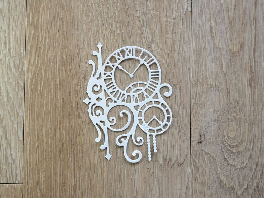 Unsere Stanzschablonen sind grundsätzlich mit allen Stanzmaschinen kompatibel, wenn sie hineinpassen. Für die Stanzschablone Zwei Uhren mit Ranken gilt: