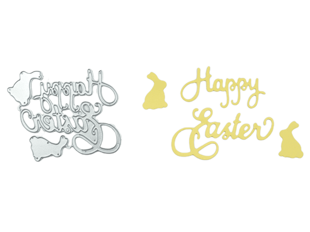 Erwecke deine Osterkarten zum Leben mit dieser Stanzschablone: Zwei Hasen und Schriftzug "Happy Easter". Perfekt für alle DIY-Liebhaber, diese Schablone ist einfach zu verwenden und liefert beeindruckende Ergebnisse. Die süßen Hasen und der fröhliche Ostergruß verleihen deinen Kreationen einen Hauch von Charme und Fröhlichkeit. Ideal für Scrapbooking, Kartenherstellung und andere Bastelprojekte. Lass deiner Kreativität freien Lauf und bringe Freude in die Osterzeit!
