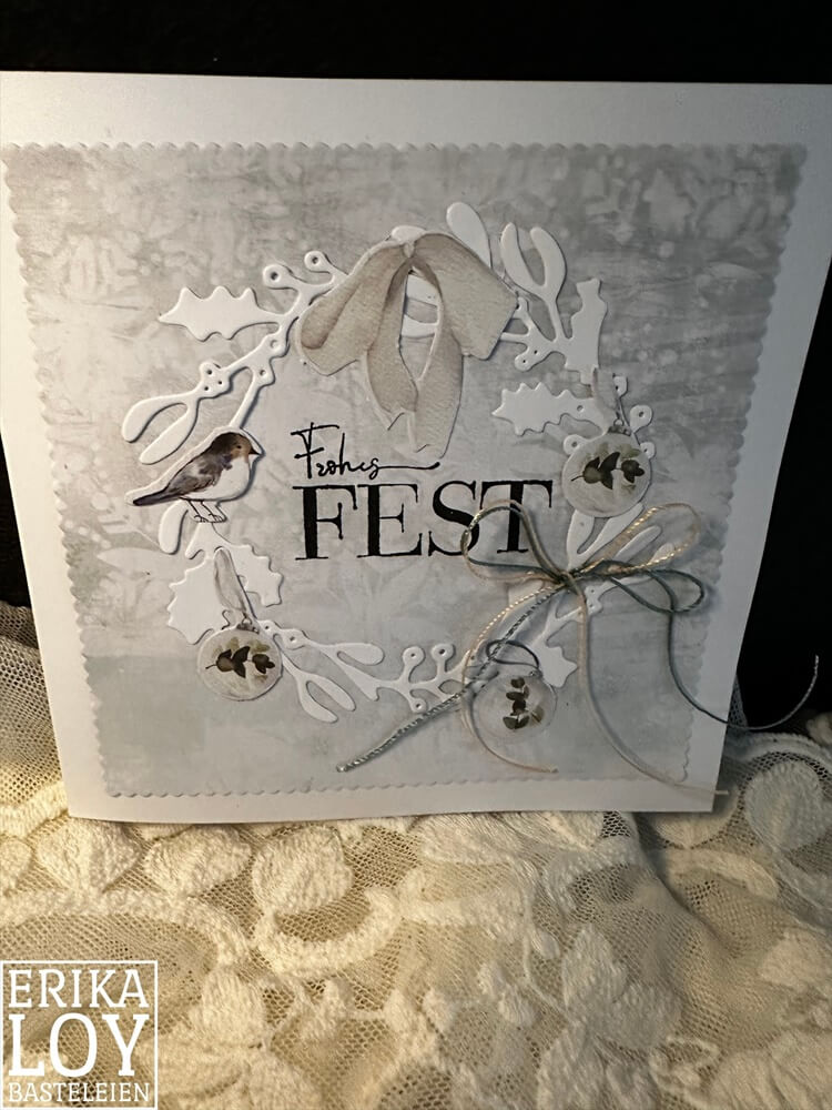 Erika von erika.loy_basteleien bei Instagram hat mit der Stanzschablone Kranz mit Beeren eine stilvolle, quadratische Weihnachtskarte in klassischem Weiß und Dunkelrot gestaltet. Der filigran ausgestanzte Kranz rahmt den liebevoll kolorierten Weihnachtsmann perfekt ein und zeigt, wie du mit dieser Stanze im Handumdrehen einen edlen Fokus für deine Festtagspost setzen kannst.