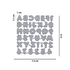 Buchstaben: 1,1 x 1 cm; Gesamtgröße der Stanze: 7,5 x 8 cm.