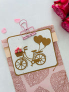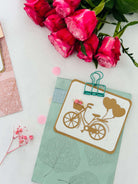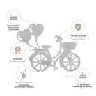 Zartes Rosa, feine Details und ganz viel Liebe: Unsere Kundin Eveline hat die Stanzschablone Fahrrad mit Luftballons in Szene gesetzt – mit Herzluftballons, Blütenkorb und passendem Designpapier. Einfach zauberhaft!