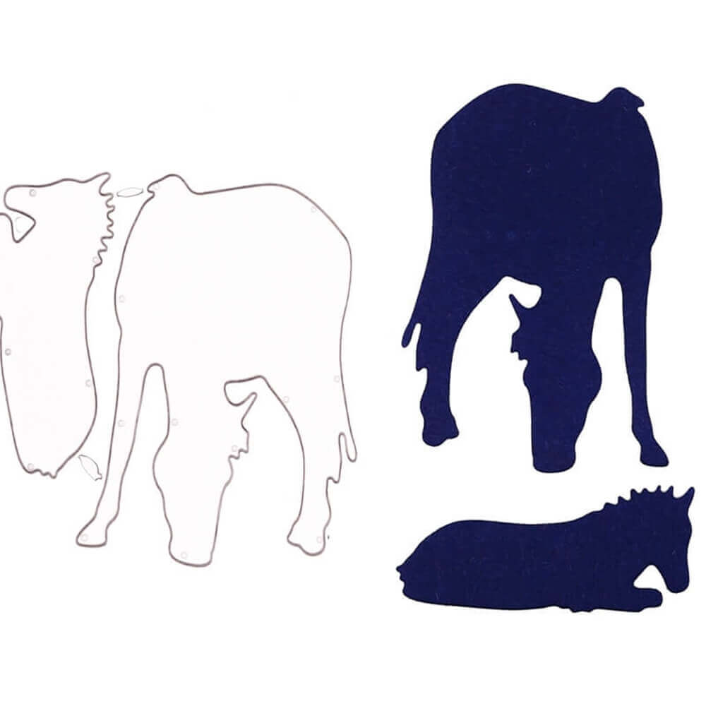 Unsere Stanzschablonen sind grundsätzlich mit allen Stanzmaschinen kompatibel, wenn sie hineinpassen. Für die Stanzschablone Pferd mit Fohlen gilt: