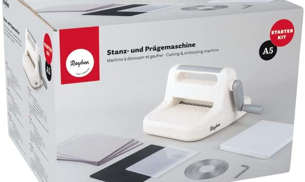 Du brauchst eine Stanzmaschine, Papier und die Stanzschablone. Beim Stanzen wird das Papier mit der Stanzschablone zwischen zwei Platten gelegt. Diese zwei Platten werden dann samt Papier und Stanzschablone durch die Stanzmaschine gekurbelt. Durch dieses Verfahren wird das Papier gestanzt und in die Form der Stanzschablone gebracht. Je nach Dicke des Papiers kann es vorkommen, dass dieser Vorgang mehr als einmal wiederholt werden muss, um die gewünschte Form zu erhalten.