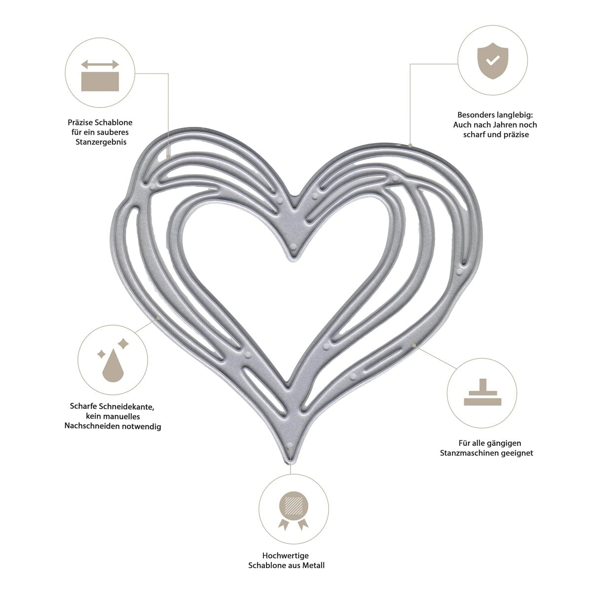 Stanzschablone Herz im Linien-Look