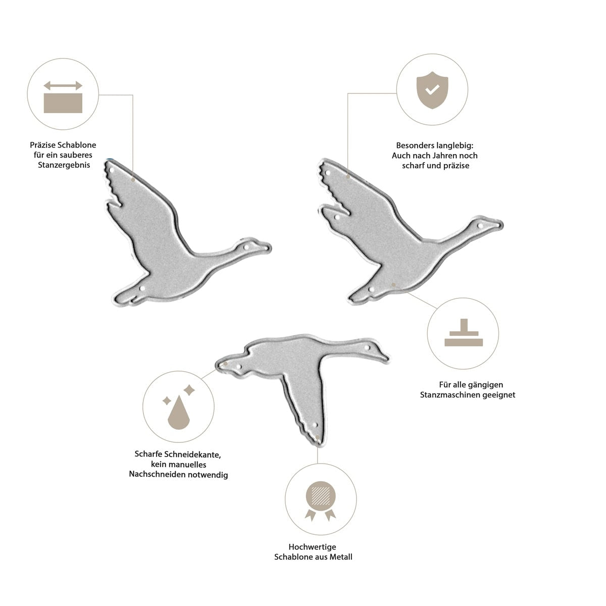 Unsere Stanzen bestehen aus hochwertigem, langlebigem Stahl und sind für den langfristigen Einsatz konzipiert – bei richtiger Anwendung kannst du sie über viele Jahre verwenden.
