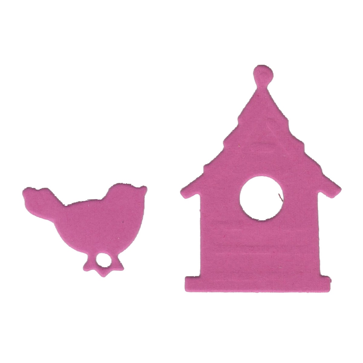 Größe Vogelhaus: 2,7 cm x 3,7 cm, Größe Vogel: 1,5 cm x 2 cm.