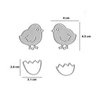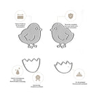 Größe der Elemente: Küken: 4 x 4,5 cm; Große Eierschale: 3,1 x 2,6 cm.