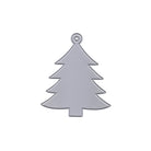 Die Stanzschablone großer Tannenbaumanhänger von Stanzenshop.de ist ein flacher, grauer Tannenbaumanhänger (8,1 x 6,9 cm) mit einem Loch oben - ideal als Geschenkanhänger für festliche Geschenke.