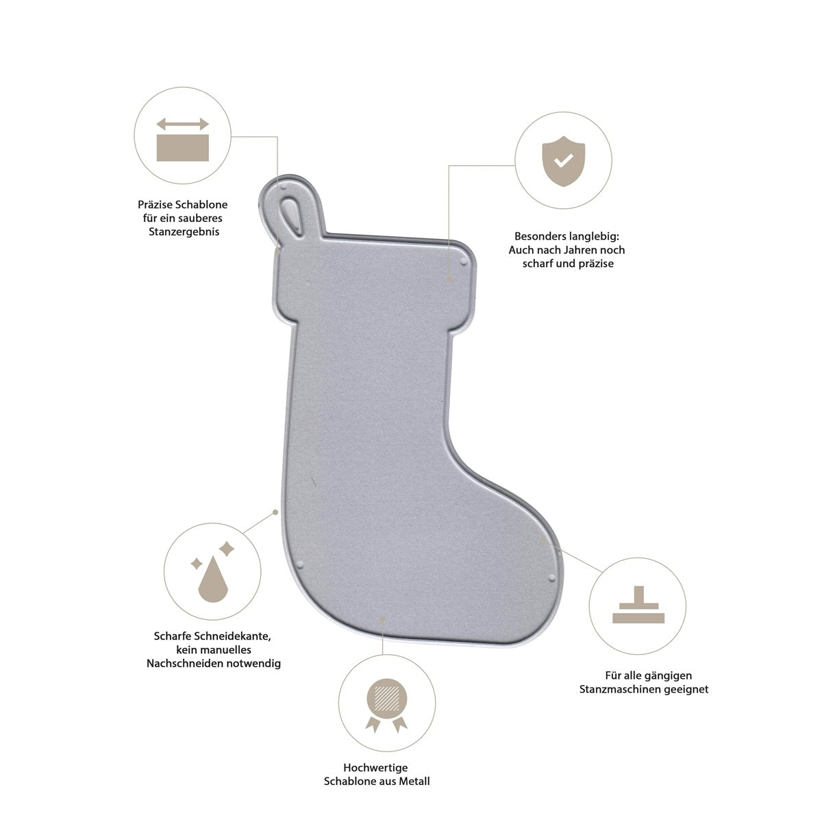 Zaubere festliche Weihnachtsmomente! Diese charmante Stanzschablone kreiert im Handumdrehen detailverliebte Weihnachtssocken. Perfekt für einzigartige Karten, stilvolle Anhänger oder als zauberhafter Baumschmuck. Lass deiner Kreativität freien Lauf und gestalte unvergessliche Weihnachtsdekorationen!