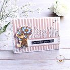 Diese fröhliche Grußkarte von Nina vom Instagram Account kreativzauber_by_nilu kombiniert geschickt die Stanzschablone Baumreihe mit Muster mit den Sechs gewellten Rahmen in verschiedenen Größen, um eine verspielte Szene in zartem Rosa und Blau zu erschaffen. Das gestreifte Hintergrundpapier und die filigranen Baum-Details verleihen dem Werk eine tolle Dynamik, die zeigt, wie wunderbar man mit diesen Stanzen Tiefe und verschiedene Ebenen in jedes Bastelprojekt bringen kann.