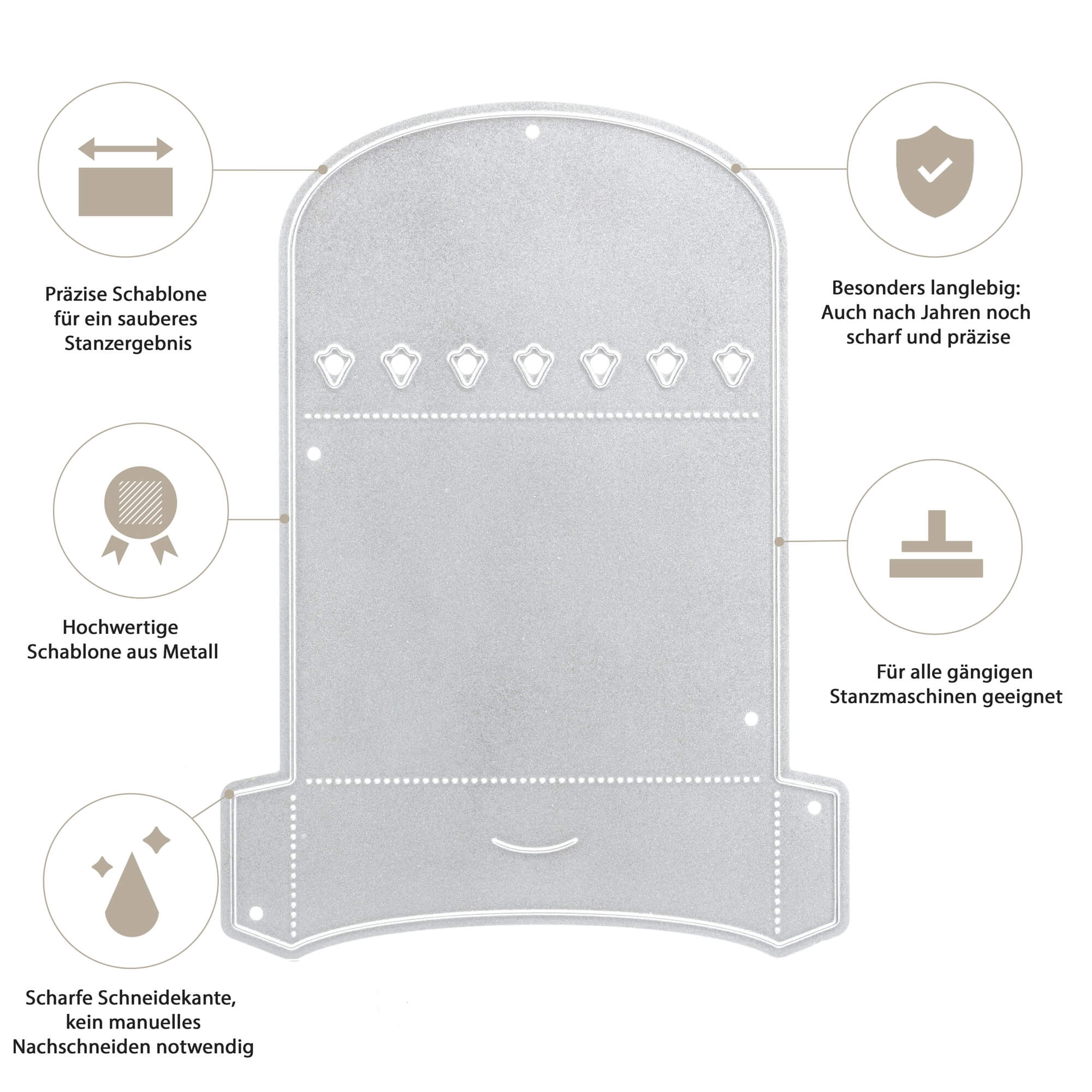 Benutze die Schablone gemäß der Anleitung der Schneide- und Prägemaschine.