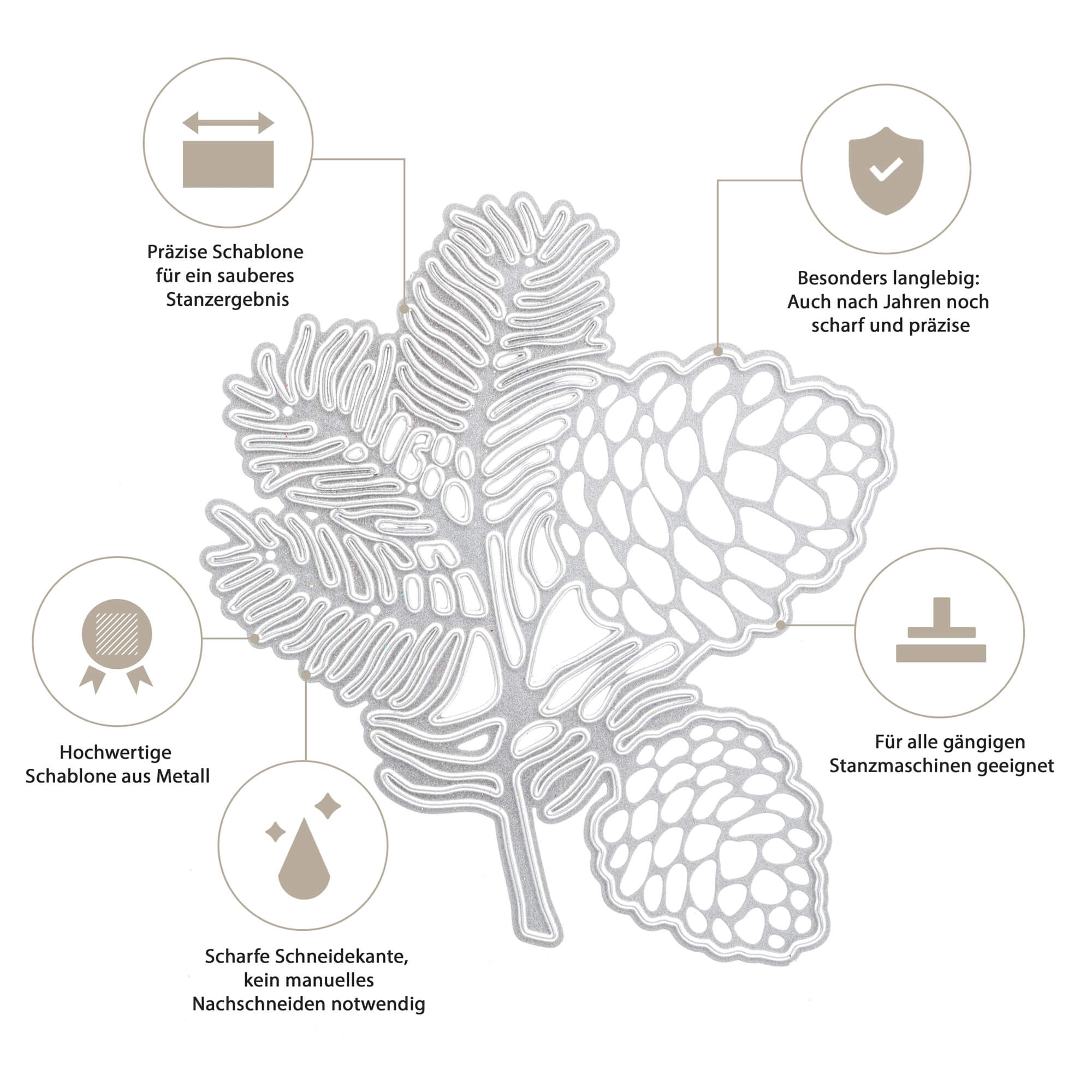 Alle abgebildeten Stanzen sind enthalten. Zubehör wie Papier oder Maschinen ist nicht Teil des Lieferumfangs