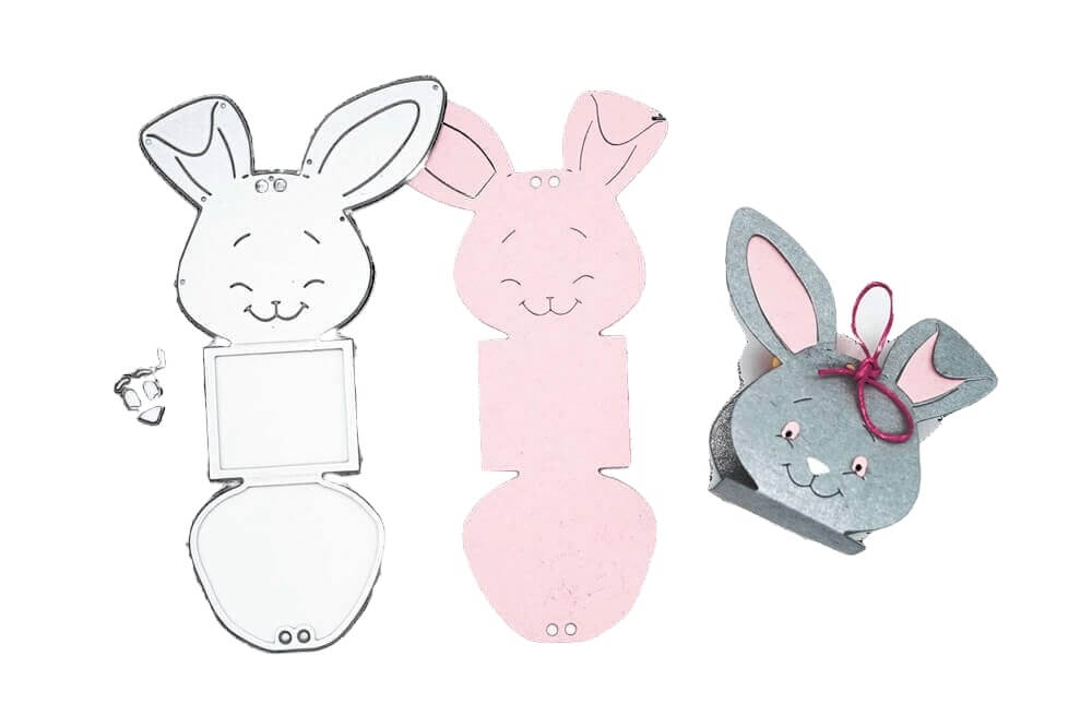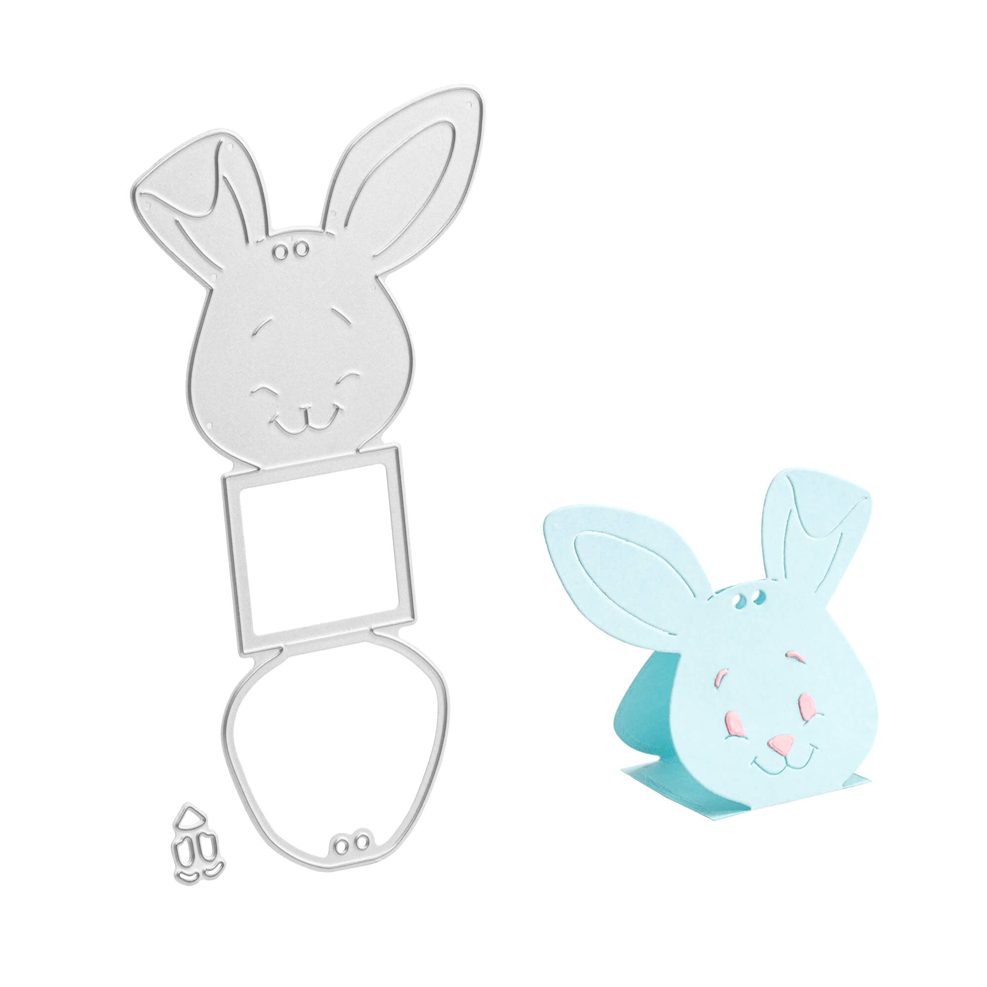 Bastelset für einen Aufsteller mit Hasenohren, Gesamte Stanze ca. 8 x 14,5 cm groß. Fertiger Aufsteller: 7,7 x 3,3 x 6,5 cm groß.
