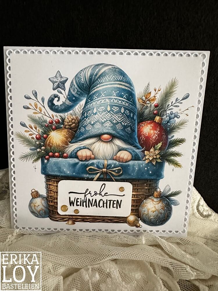 Diese elegante Karte überzeugt durch ihre warme Farbpalette aus Gold, Beige und Creme, wobei das zentrale, glänzende Geschenk mit Schleife perfekt in einem Kreis aus glänzendem Gold in Szene gesetzt wird. Das mehrlagige Design, das die Quadrate mit Wellenrand und den gestickten Rahmen nutzt, verleiht der Karte Tiefe und zeigt, wie sich mit den Stanzschablonen von Stanzenshop.de luxuriöse und stimmungsvolle Weihnachtsgrüße gestalten lassen.