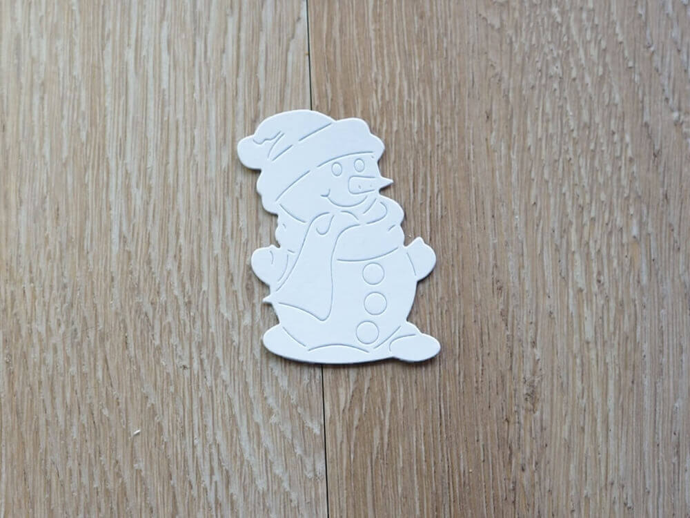 Schneemann mit einem Schal, Größe ca. 5 x 6,9 cm.