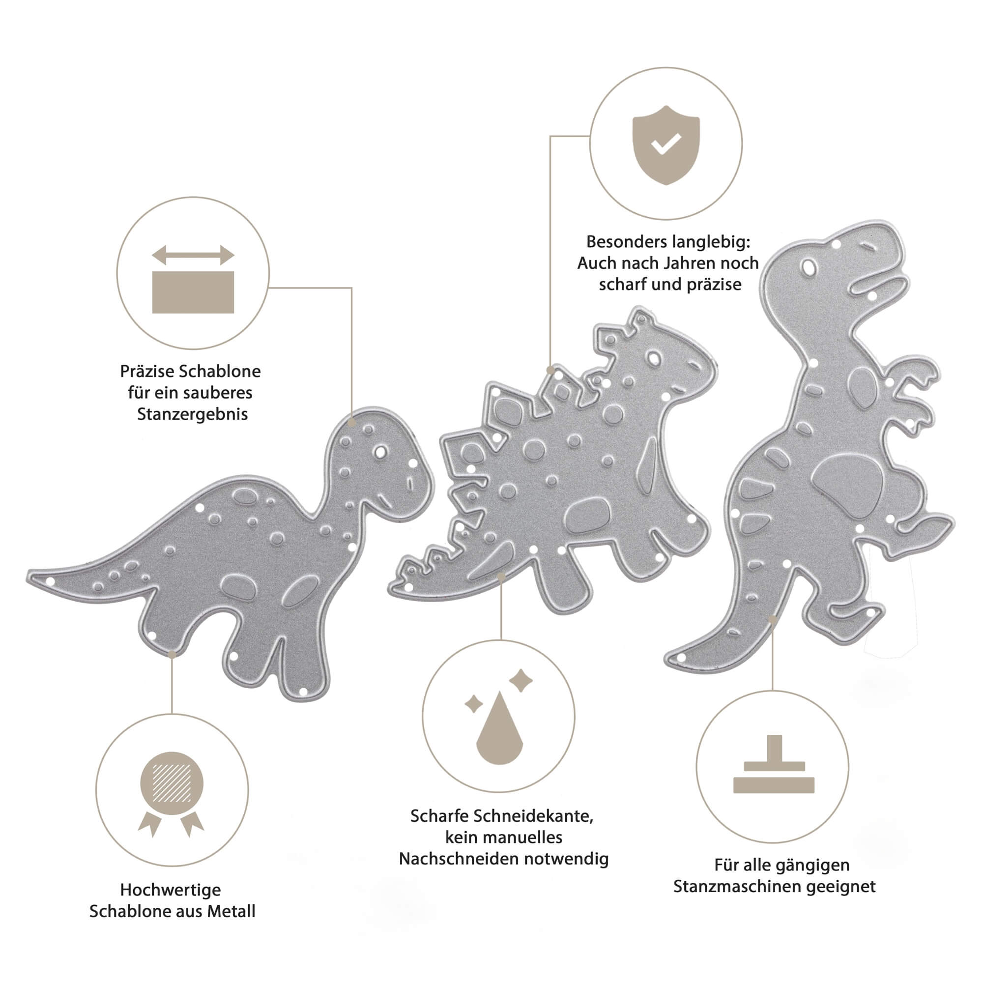 Unsere Stanzen bestehen aus hochwertigem, langlebigem Stahl und sind für den langfristigen Einsatz konzipiert – bei richtiger Anwendung kannst du sie über viele Jahre verwenden.