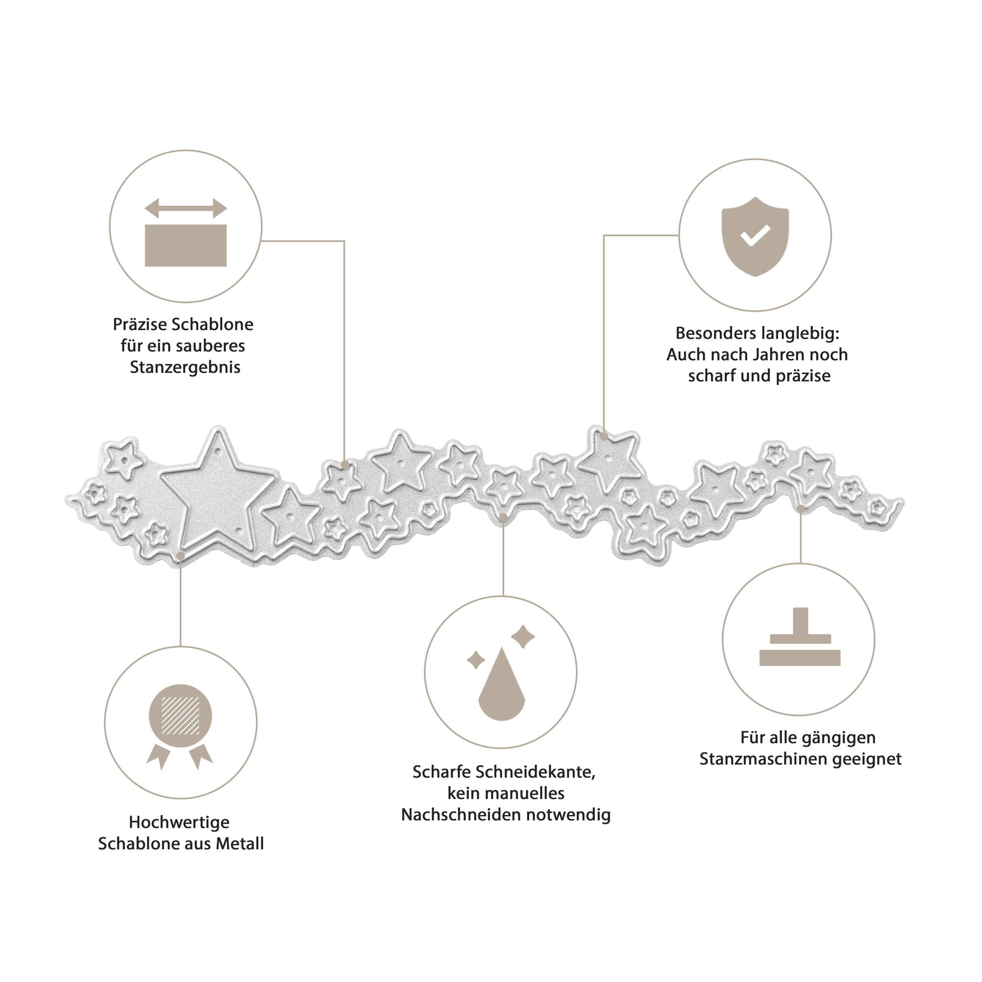 Welle aus Sternen, z.B. als Rand von Karten, Gesamte Stanze ca. 14,1 x 2,5 cm groß.