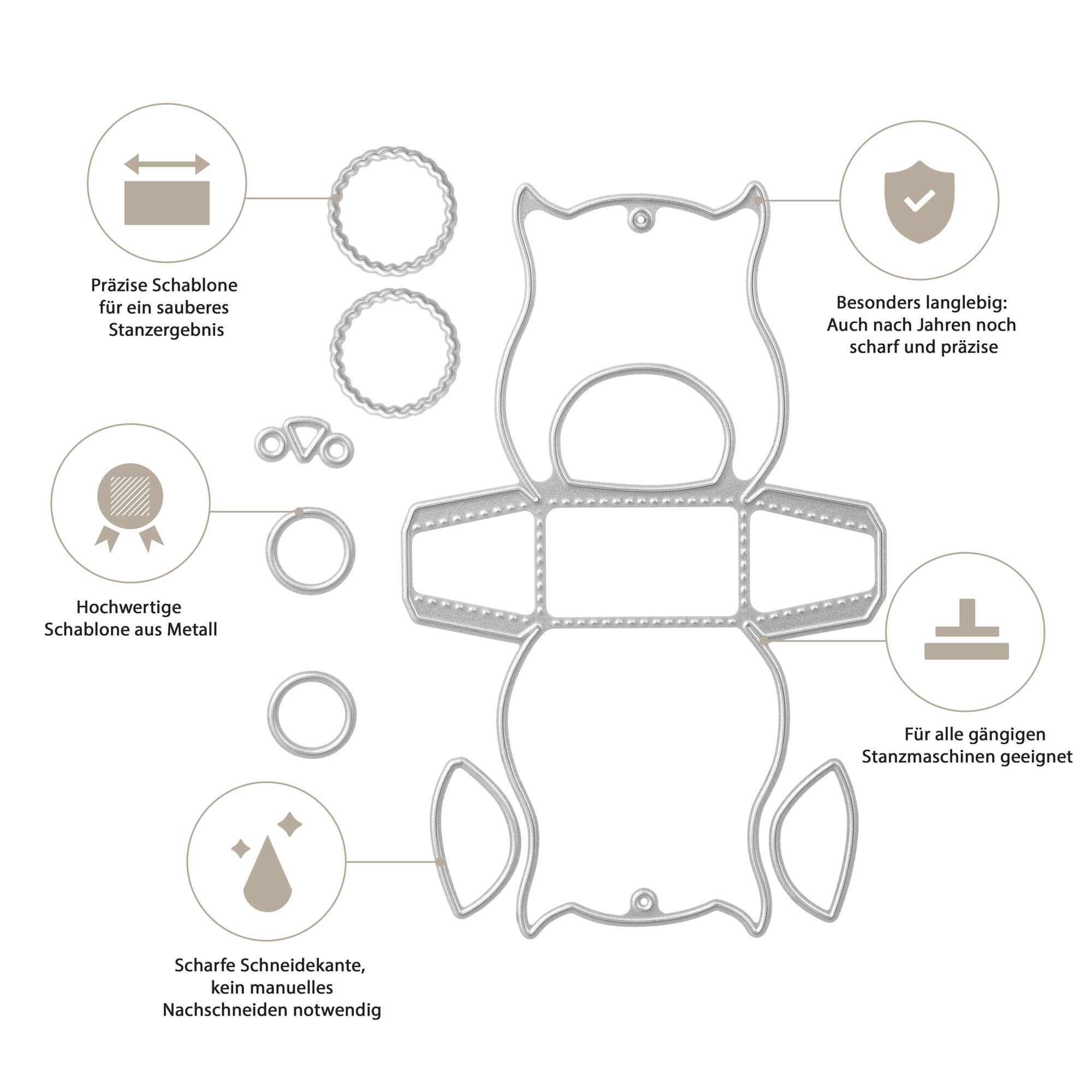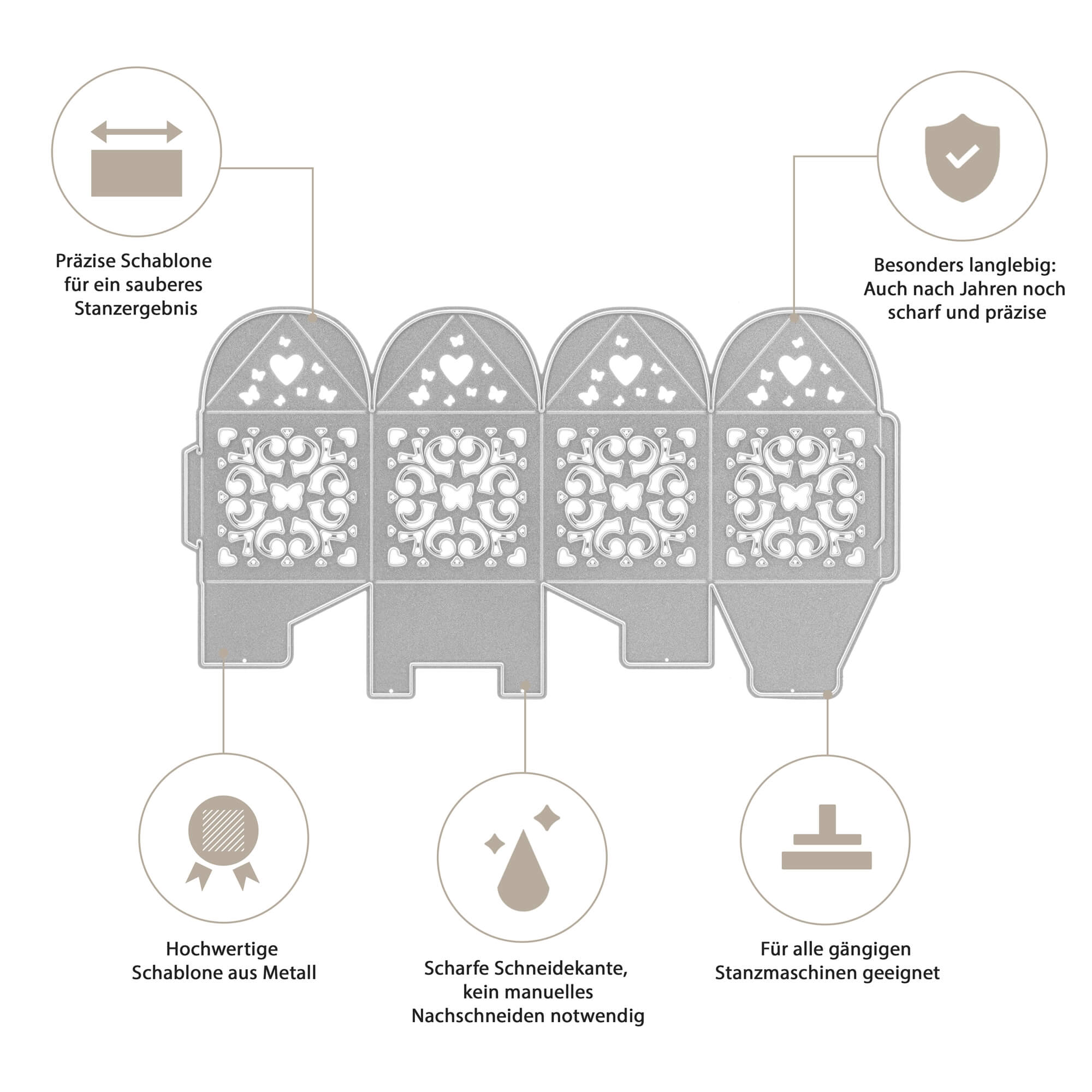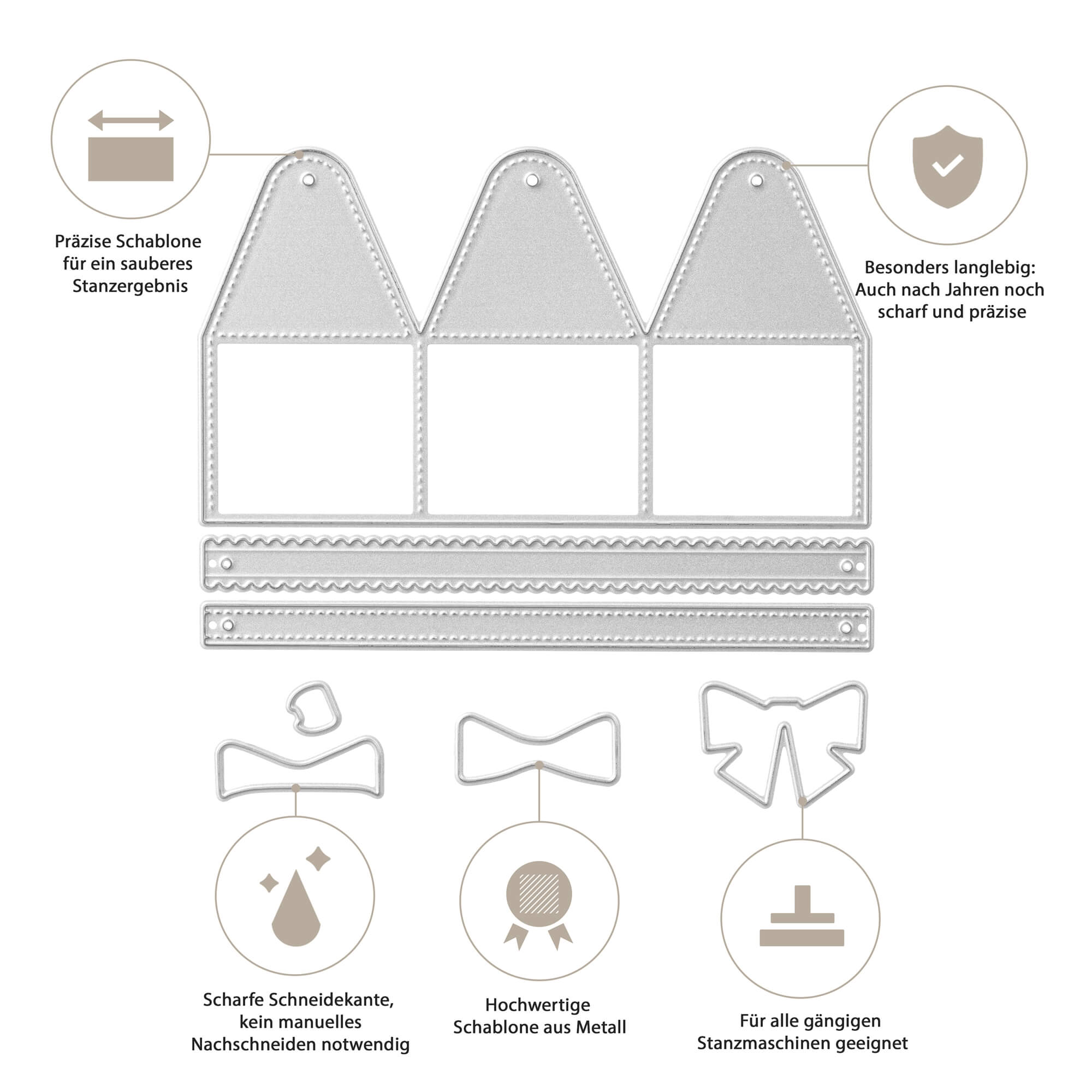 Alle abgebildeten Stanzen sind enthalten. Zubehör wie Papier oder Maschinen ist nicht Teil des Lieferumfangs