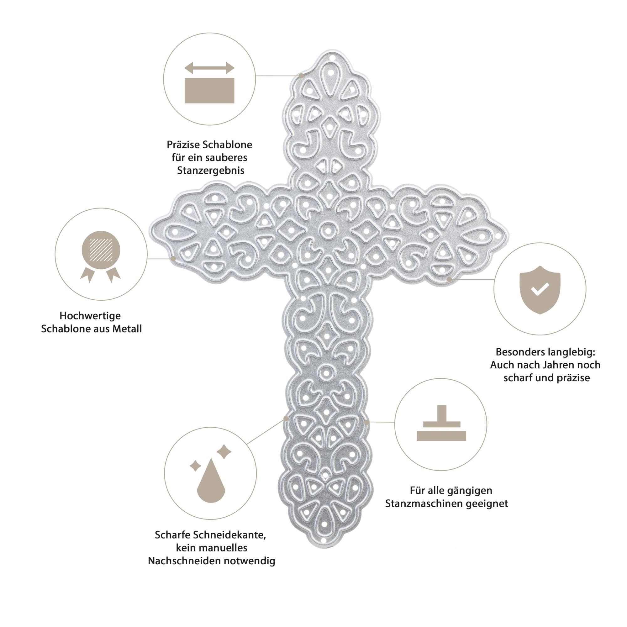 Erlebe die kreative Freiheit mit der Stanzschablone Großes Kreuz. Perfekt für Bastelliebhaber, ermöglicht es dir, beeindruckende Designs mit Leichtigkeit zu erstellen. Hergestellt aus robustem Material, garantiert es langlebige Nutzung. Ob für Grußkarten, Scrapbooking oder andere Kunstprojekte, diese Schablone ist dein Schlüssel zu atemberaubenden Kreationen. Lass deiner Fantasie freien Lauf und entdecke die Freude am Basteln. Kaufe jetzt die Stanzschablone Großes Kreuz und bringe deine Kunst auf das nächste Level!