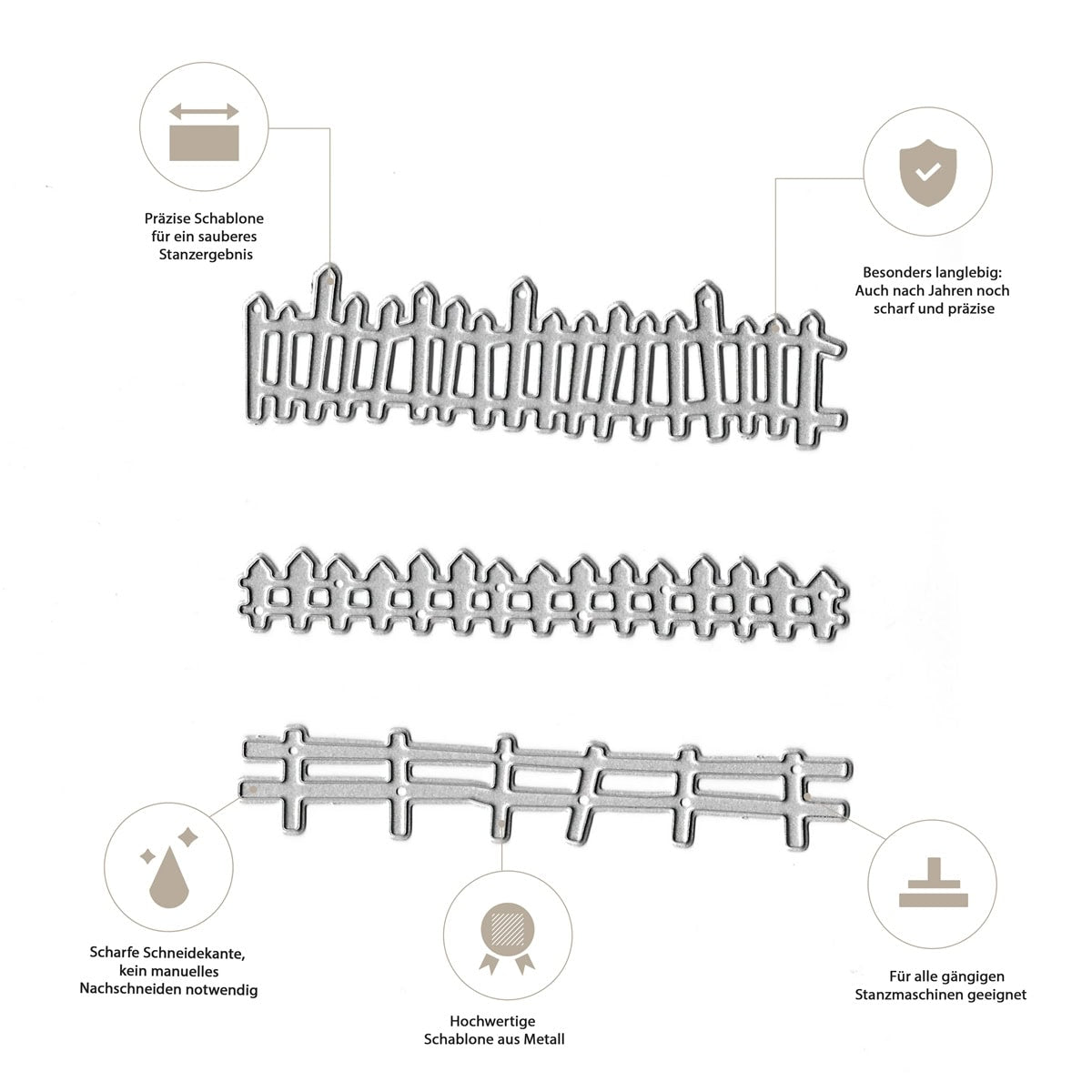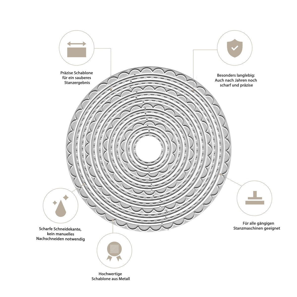 Alle abgebildeten Stanzen sind enthalten. Zubehör wie Papier oder Maschinen ist nicht Teil des Lieferumfangs