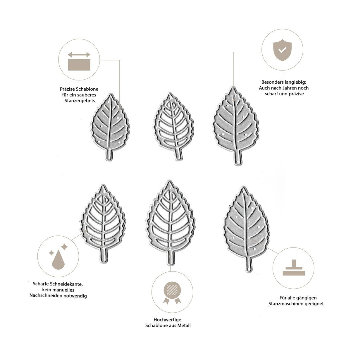 Unsere Stanzen bestehen aus hochwertigem, langlebigem Stahl und sind für den langfristigen Einsatz konzipiert – bei richtiger Anwendung kannst du sie über viele Jahre verwenden.