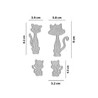 Große Katze: 3,9 x 8,2 cm, großer Kater: 5,8 x 9 cm, Kätzchen: 3,2 x 4,5 cm.
