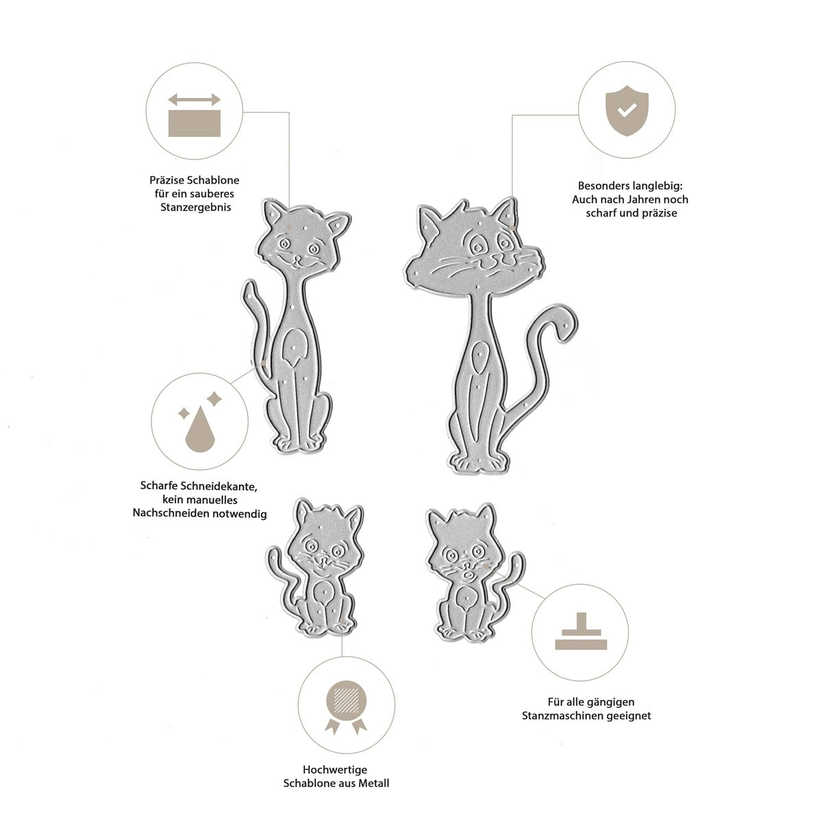 Unsere Stanzschablonen sind grundsätzlich mit allen Stanzmaschinen kompatibel, wenn sie hineinpassen. Für die Stanzschablone Katzenfamilie gilt: