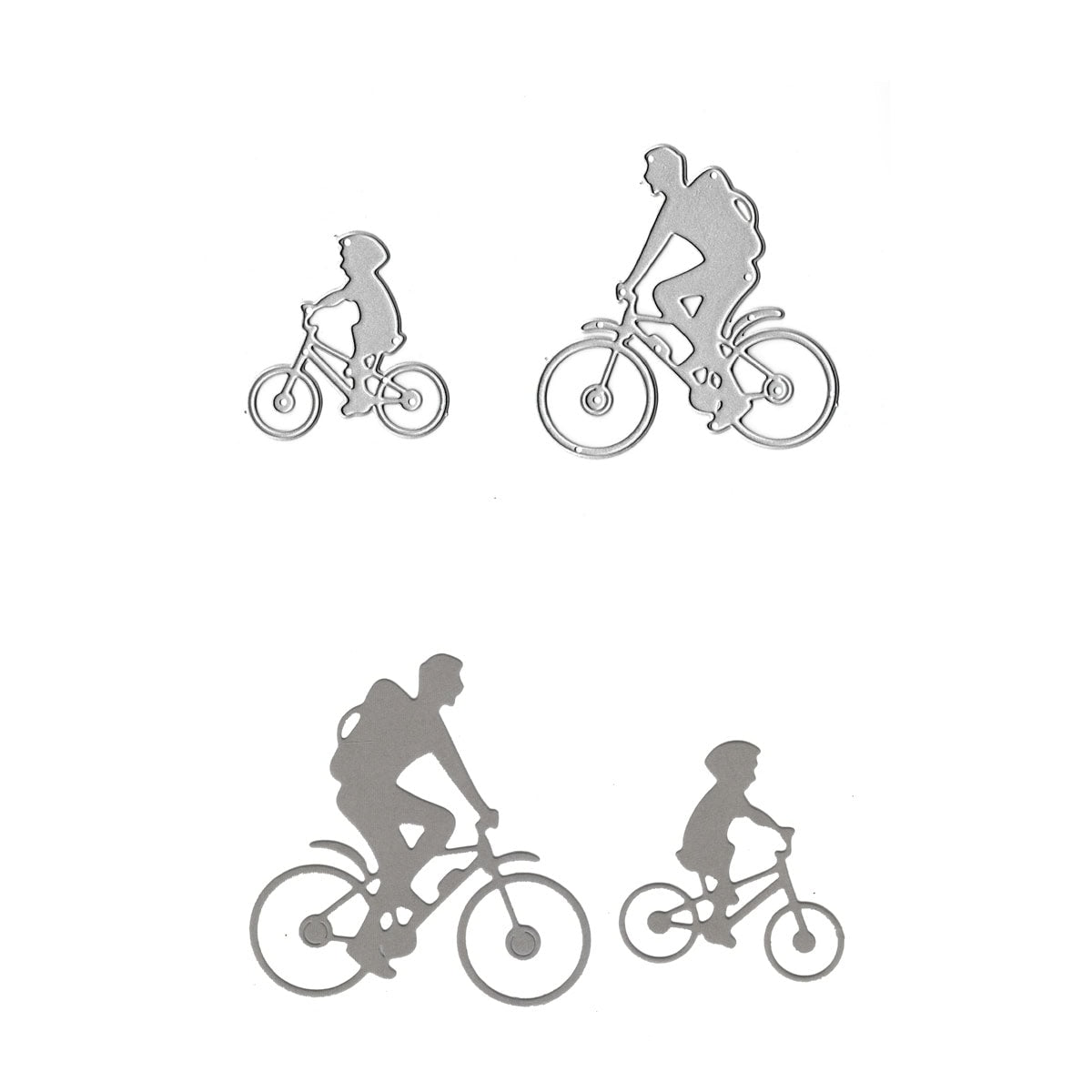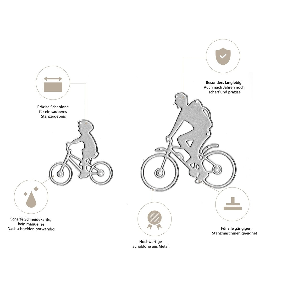 Unsere Stanzschablonen sind grundsätzlich mit allen Stanzmaschinen kompatibel, wenn sie hineinpassen. Für die Stanzschablone Vater & Kind auf Fahrradtour gilt: