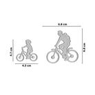 Größe Kind auf Fahrrad: 4,5 cm x 4,7 cm, Vater auf Fahrrad: 6,8 cm x 6,8 cm.