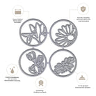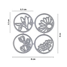 Durchmesser jeder Blume: 3,7 x 3,7 cm; Gesamtmaß der Stanze: 8 x 8 cm.