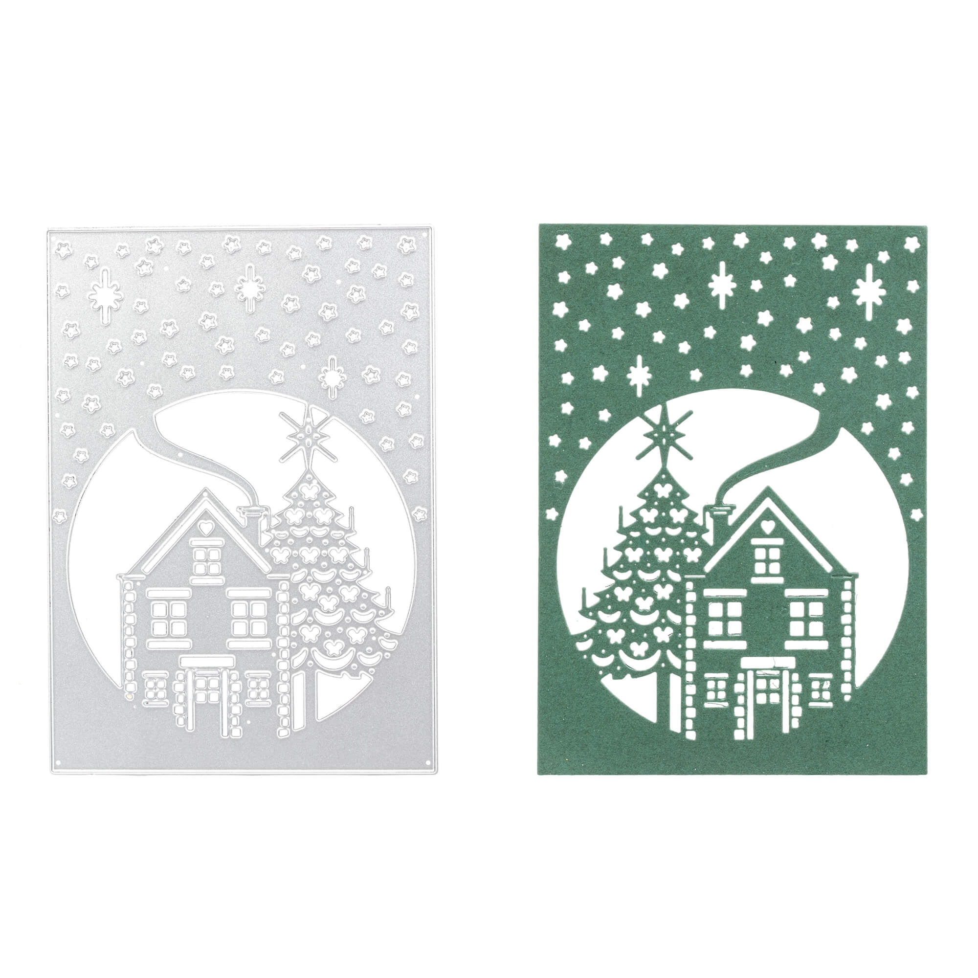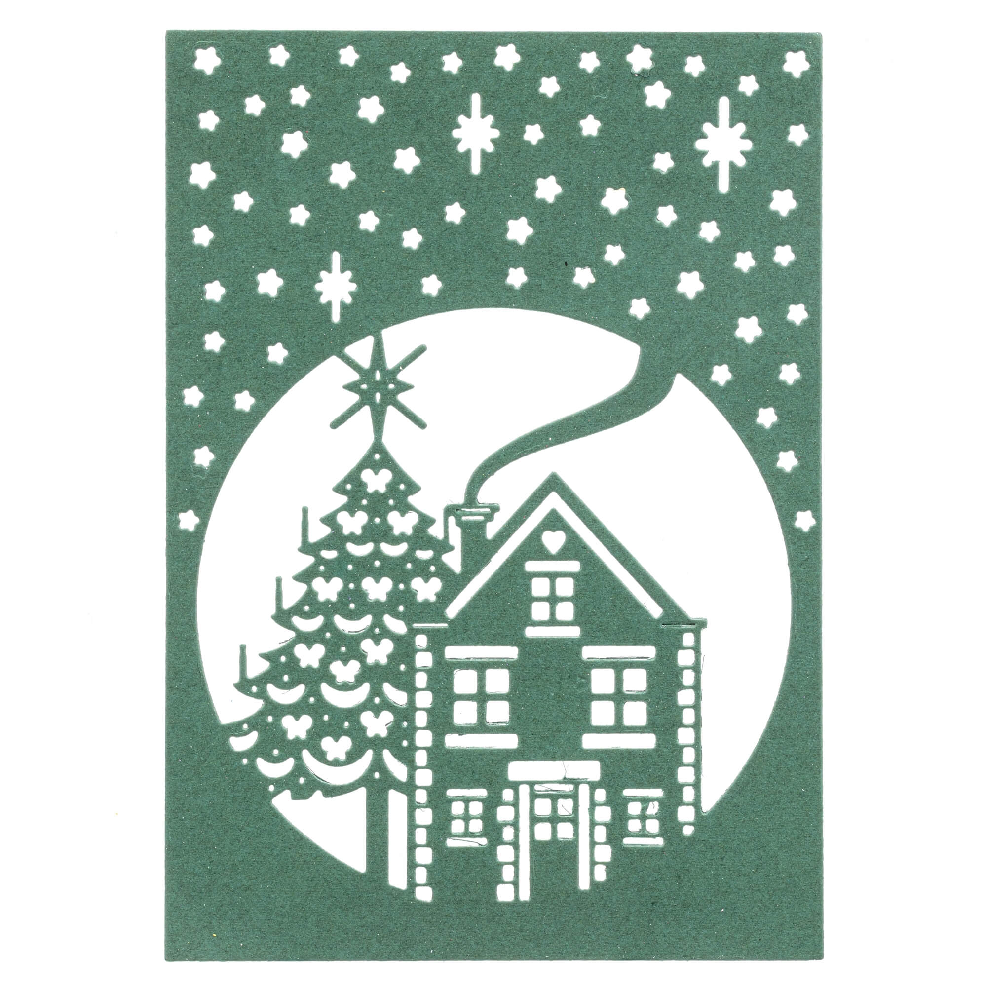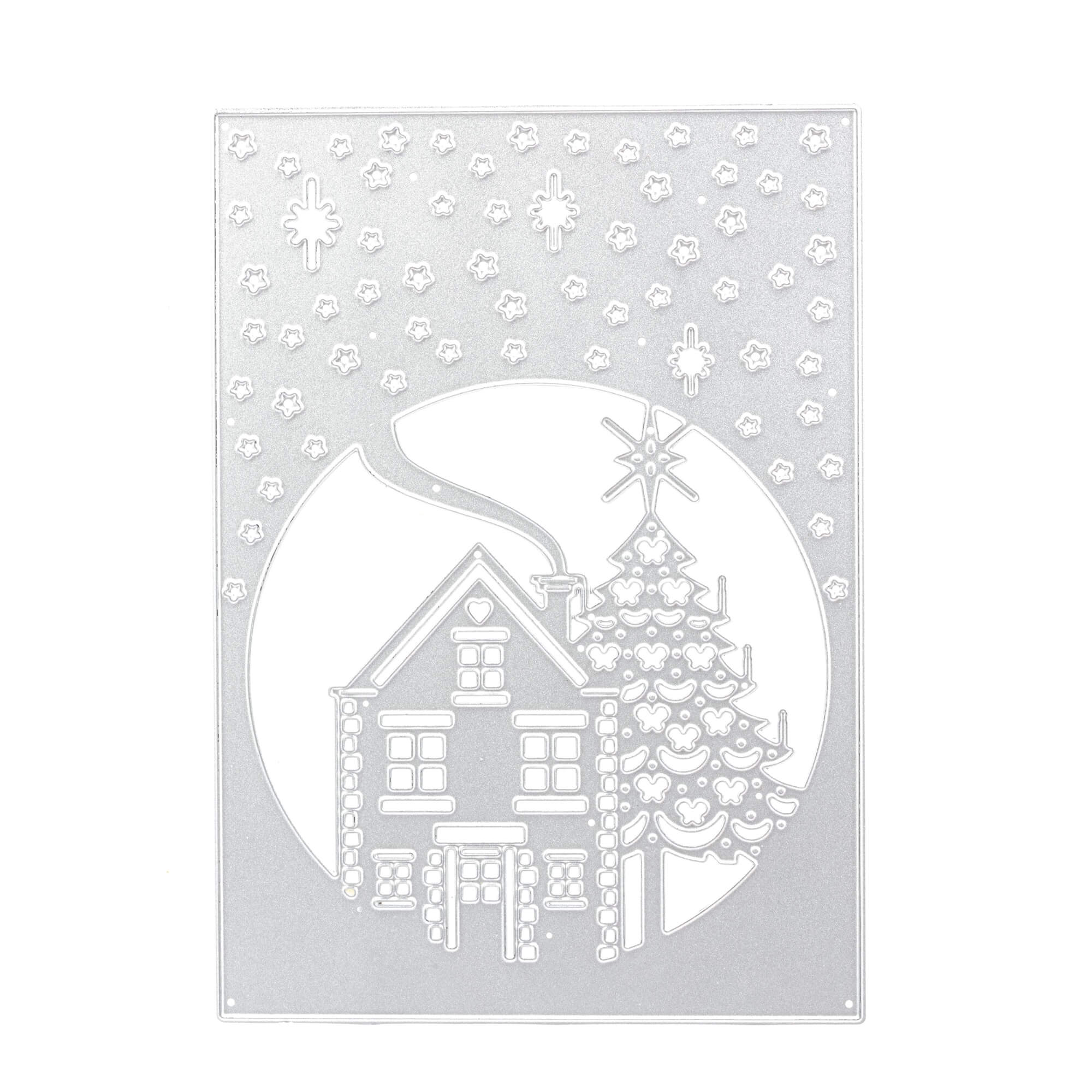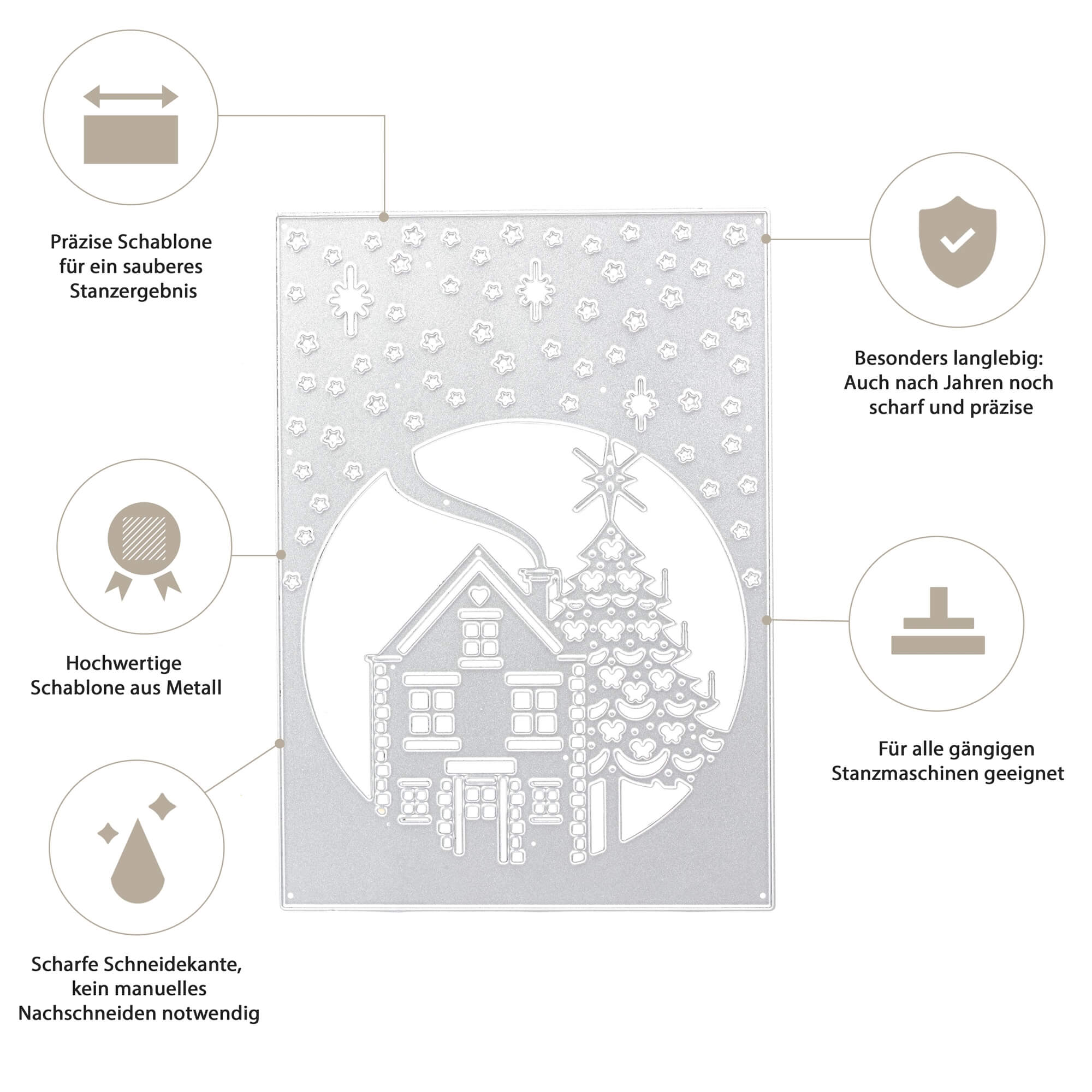 Stanzschablone: Weihnachtliches Haus mit Sternen