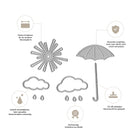 Unsere Stanzschablonen sind grundsätzlich mit allen Stanzmaschinen kompatibel, wenn sie hineinpassen. Für die Stanzschablone Sonne Wolken Regenschirm Set gilt: