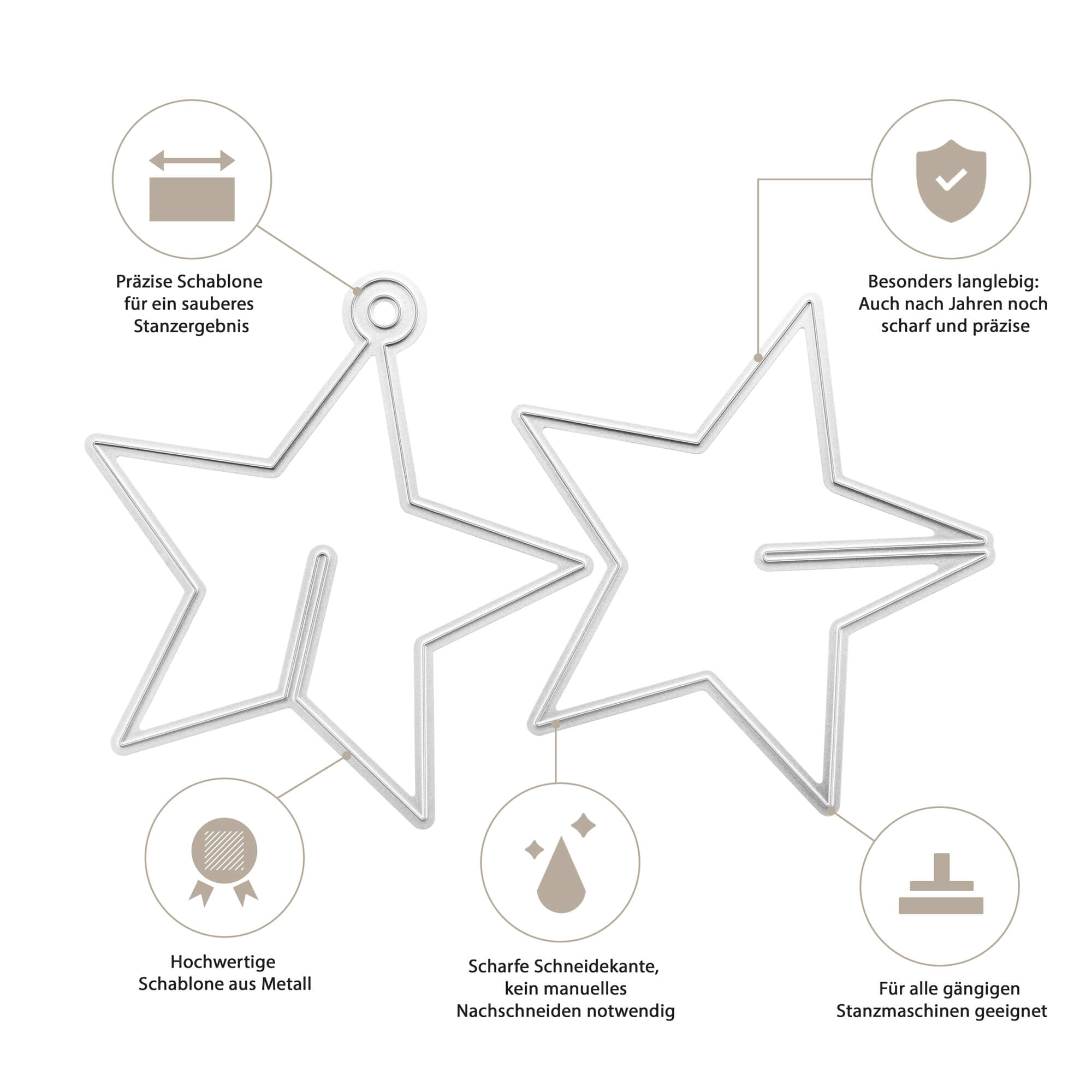 Unsere Stanzschablonen sind grundsätzlich mit allen Stanzmaschinen kompatibel, wenn sie hineinpassen. Für die Stanzschablone 3D Stern gilt: