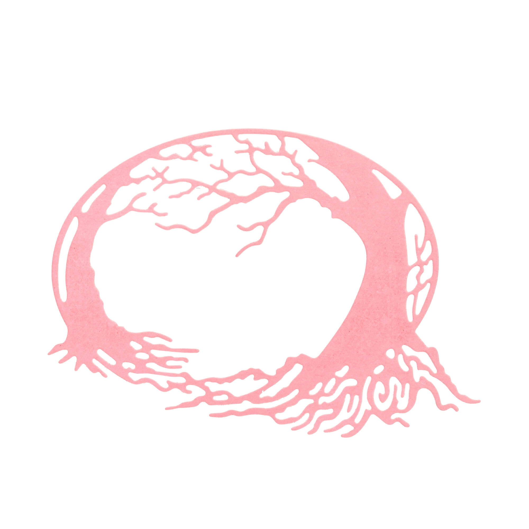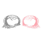 Baumkreis mit zwei Bäumen und Wurzeln, Größe ca. 11,1 x 8,5 cm.