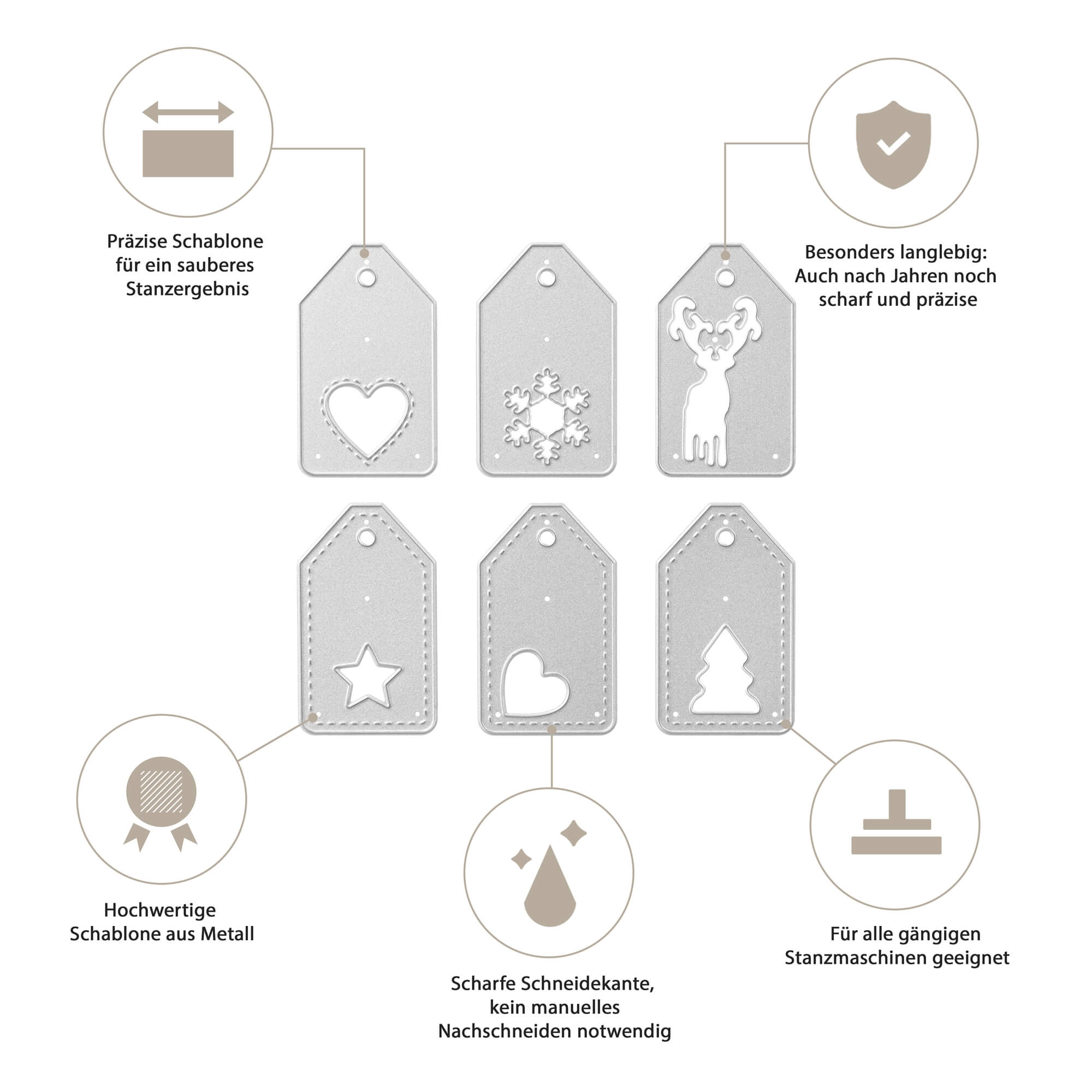 Stanzschablone Sechs Anhänger mit Weihnachtsmotiven