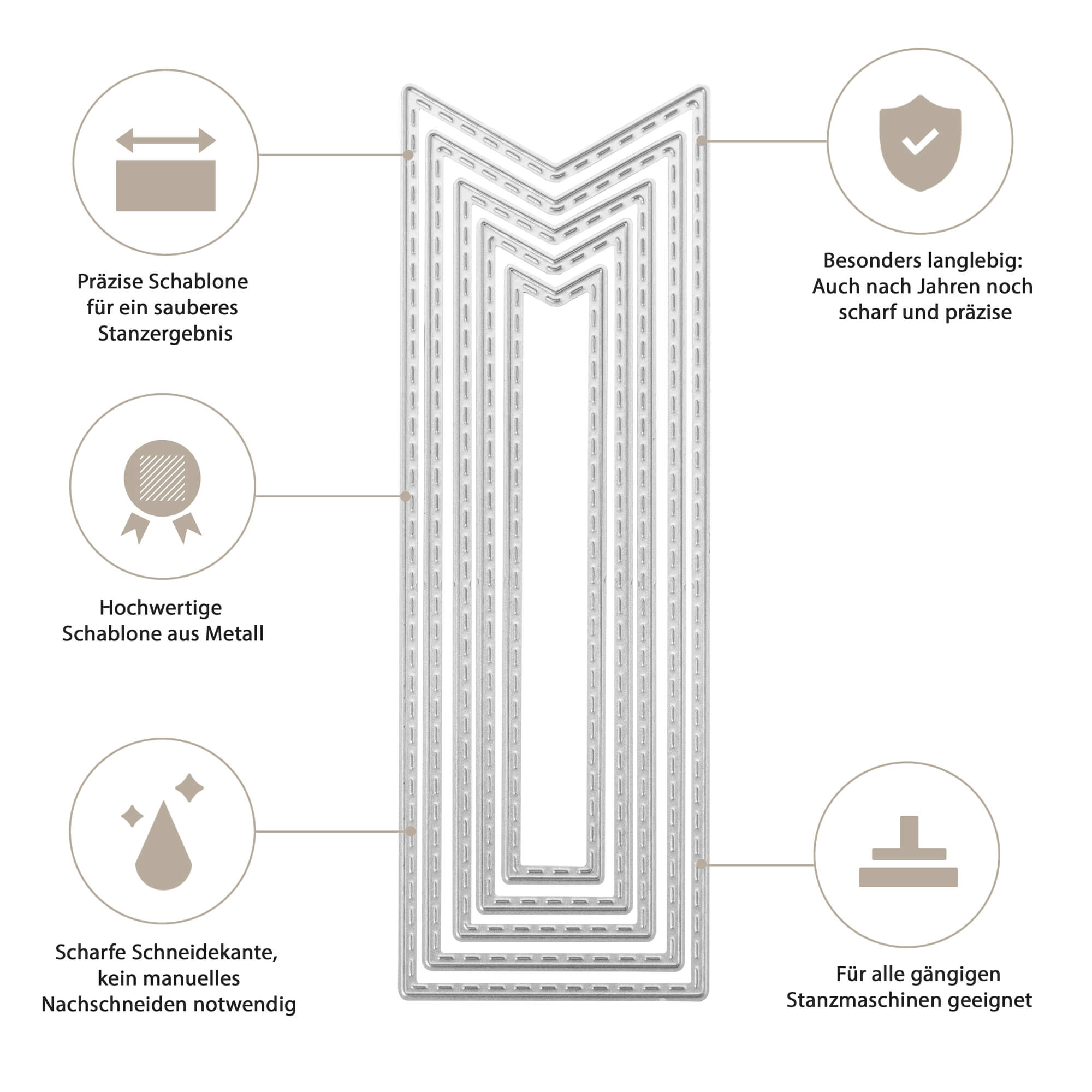 Unsere Stanzen bestehen aus hochwertigem, langlebigem Stahl und sind für den langfristigen Einsatz konzipiert – bei richtiger Anwendung kannst du sie über viele Jahre verwenden.