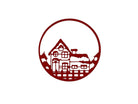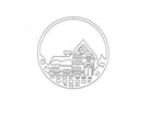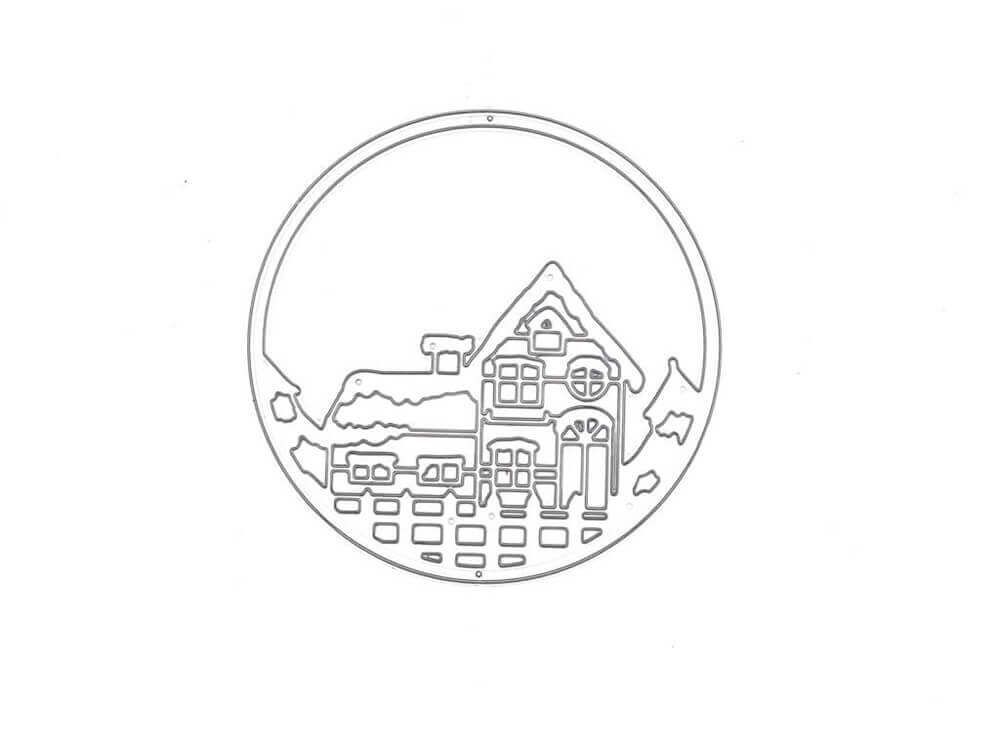 Haus mit Zaun in einem Kreis, Größe ca. 8,82 x 8,82 cm .