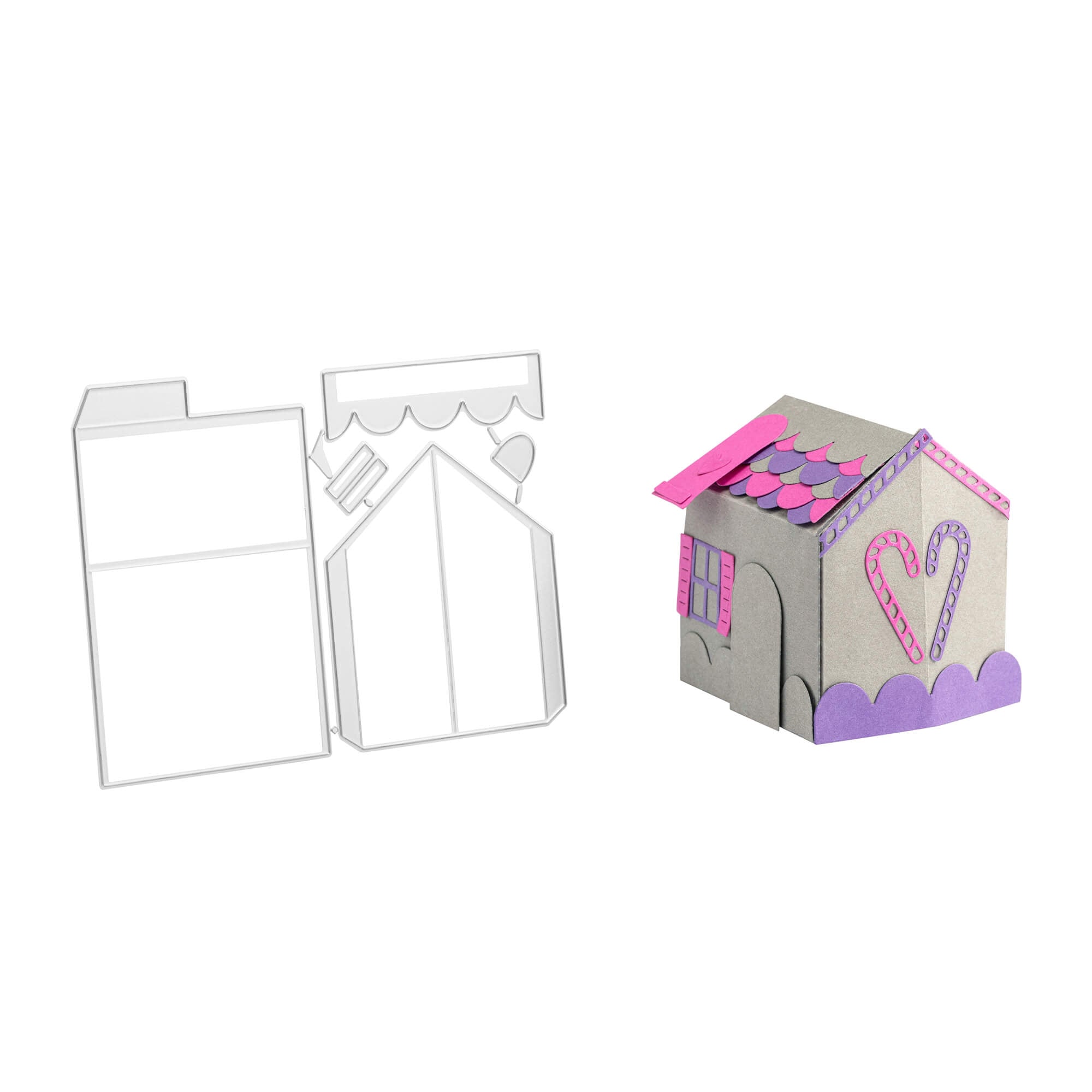 Set für ein Knusperhaus, Gesamte Stanze ca. 9,5 x 13,5 cm groß. Gebasteltes Haus ca. 6 x 6,3 x 7,5 cm.
