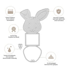 Bastelset für einen Aufsteller mit Hasenohren, Gesamte Stanze ca. 8 x 14,5 cm groß. Fertiger Aufsteller: 7,7 x 3,3 x 6,5 cm groß.