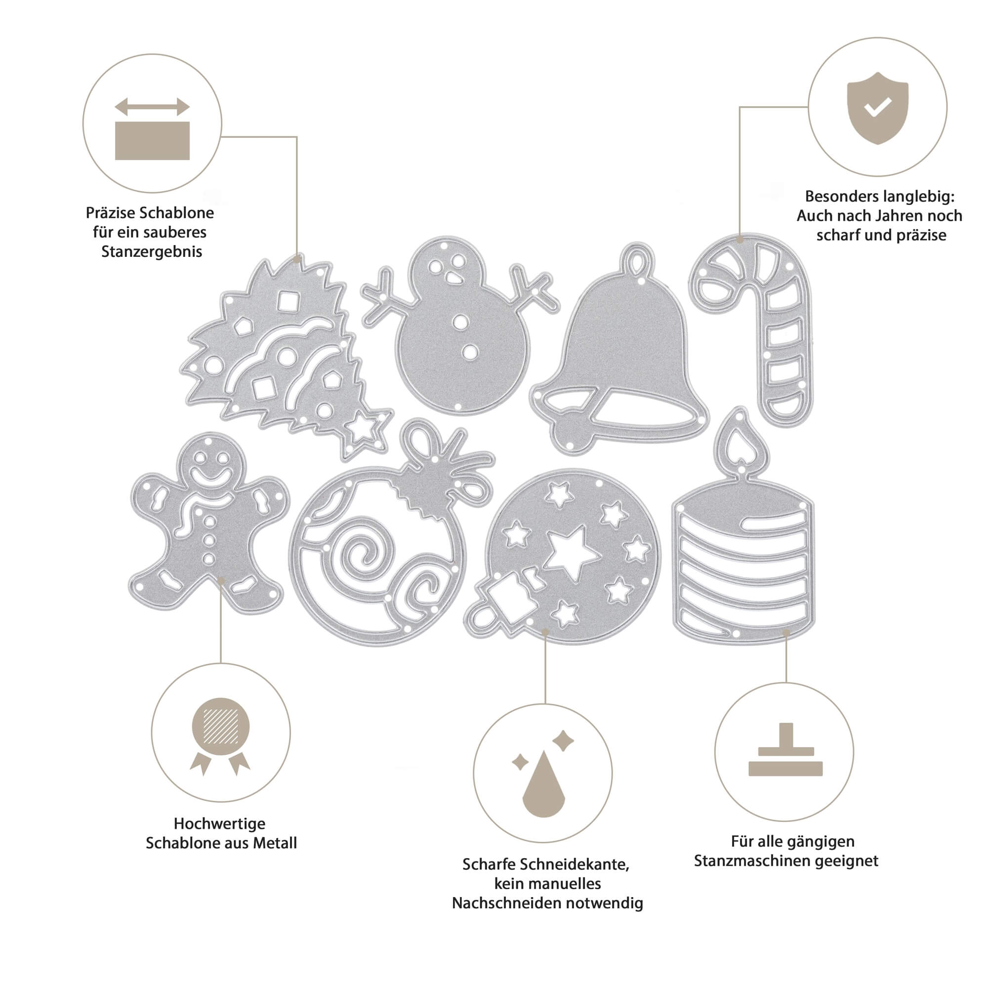 Stanzschablone: Set mit acht Weihnachtsmotiven