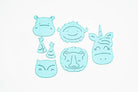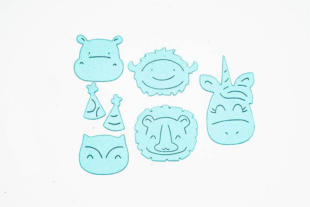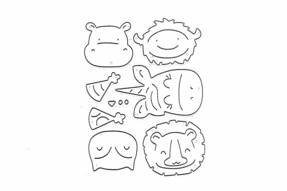 Stanzschablone Set mit verschiedenen Tieren: Nilpferd Einhorn Löwe Eule Bison